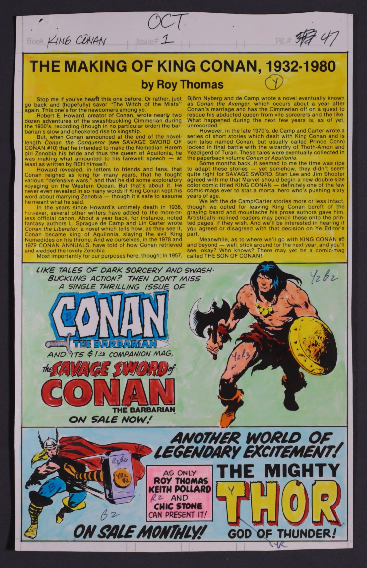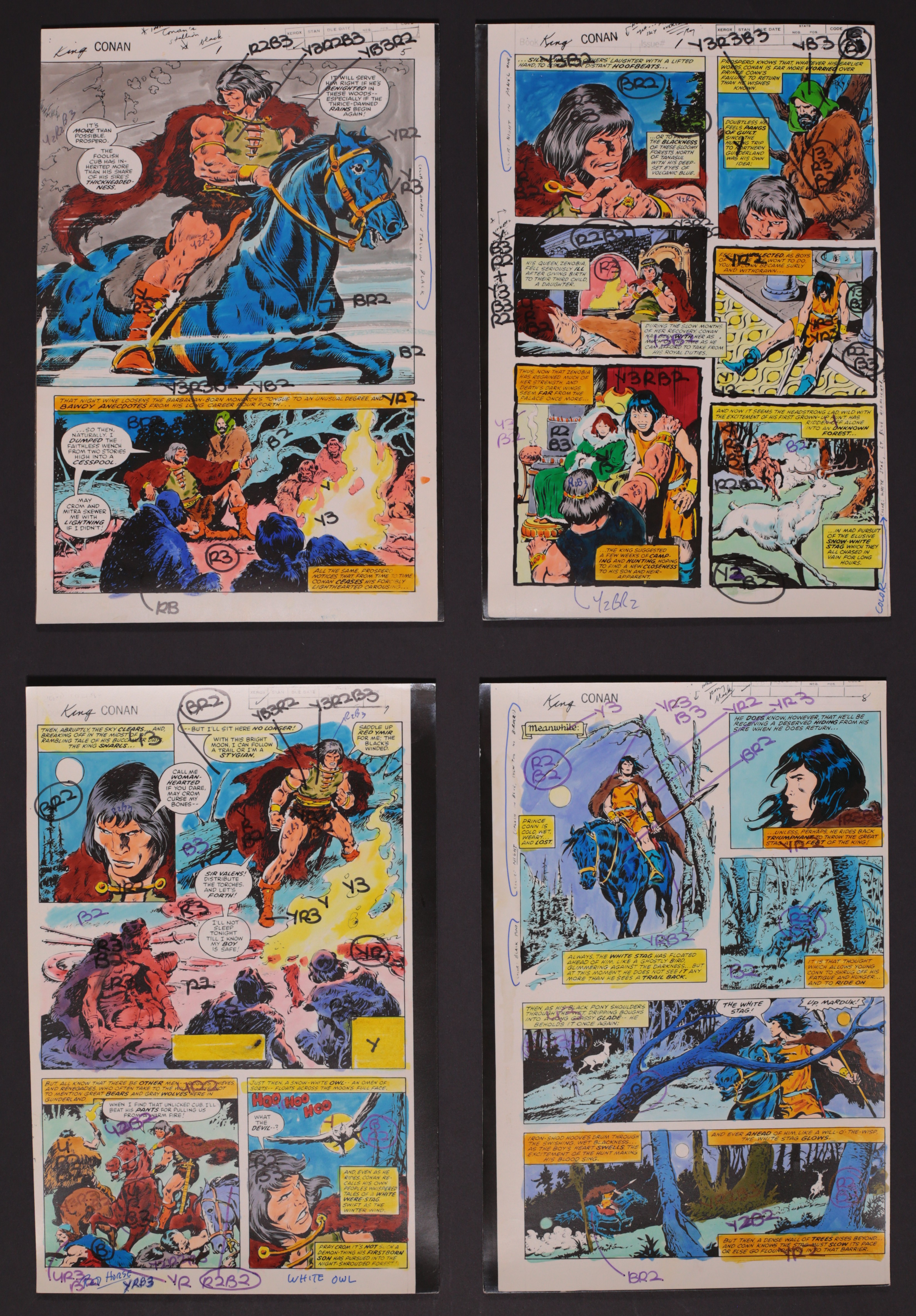 Complete Hand-Painted Color Guides for King Conan #1 (1980) by George Roussos