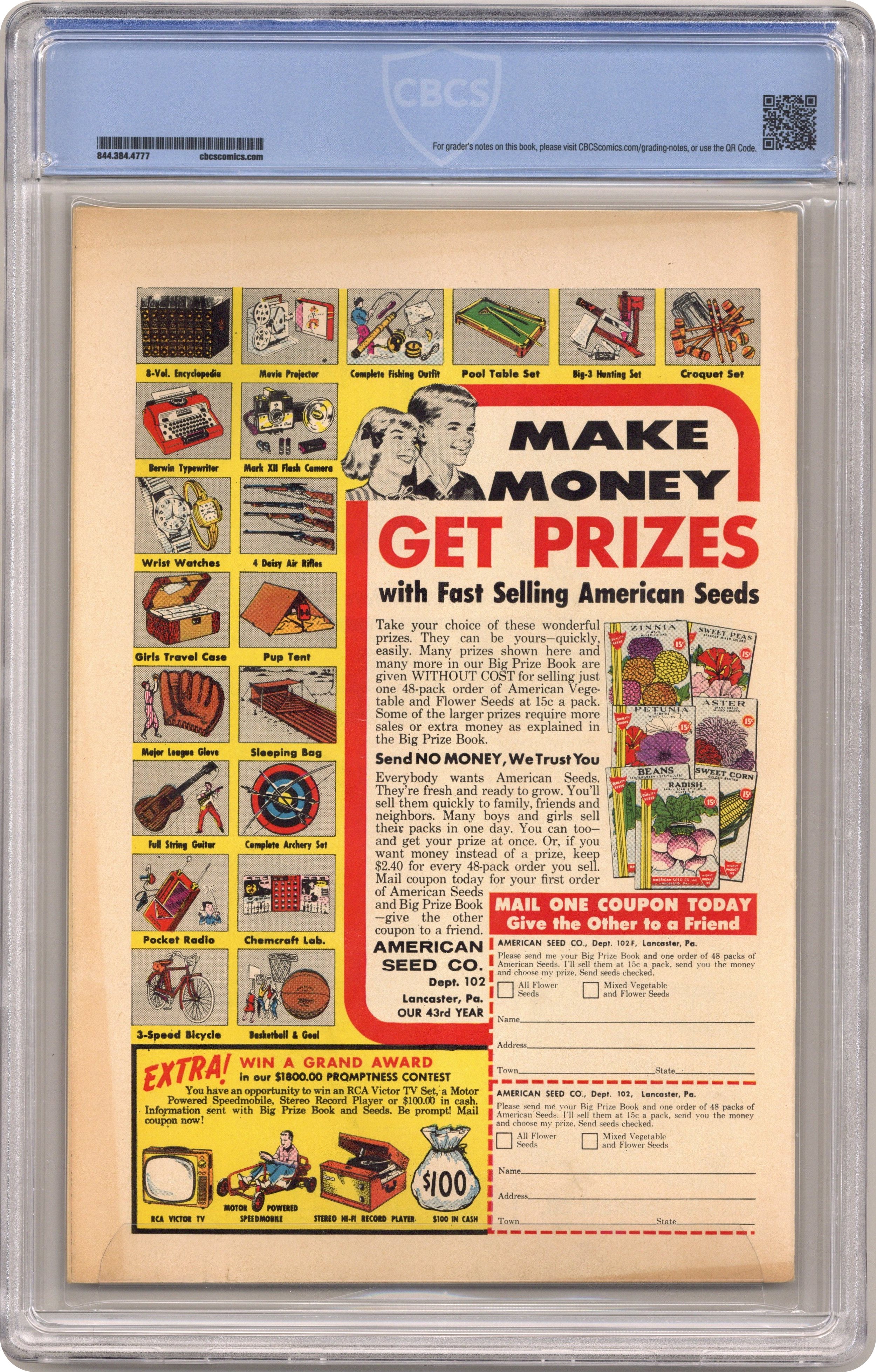 Ended Dec 12 2023 Winning Bid $61 Cover pencils by Dick Dillin, inks by Sheldon Moldoff. "The Man with the Alien Identity," pencils by Mort Meskin, inks by George Roussos; Mark is enlisted to assume temporarily the identity of Rej, an alien leader but soon realizes that it's a plot to overthrow Rej. One-page Doctor Rocket story by Henry Boltinoff. Ad for Rip Hunter... Time Master. "Don't Sell Nature Short!" public service announcement, script by Jack Schiff, art by Bernard Baily; A wildlife preserve wins out over plans to build a new shopping center. "Prisoner of Sorcerers' City," art by Ruben Moreira; Researcher Edwin Locke finds himself transported to Marsus, the fabled City of Sorcerers, where he must find the spell that will free several sorcerers that have been imprisoned there. "The Forest of Captive Creatures" text story. "The Thief of Time," art by George Roussos; Harry Logan steals an invention that allows him to see into other time periods, but he discovers a giant alien in each of them, and then the alien is drawn into Harry's time. Ad for Aquaman and Aqualad. 36 Pages, Full Color. Cover price $0.10. Grade: CBCS 6.5 explanation of grade Condition: Used (collectible)