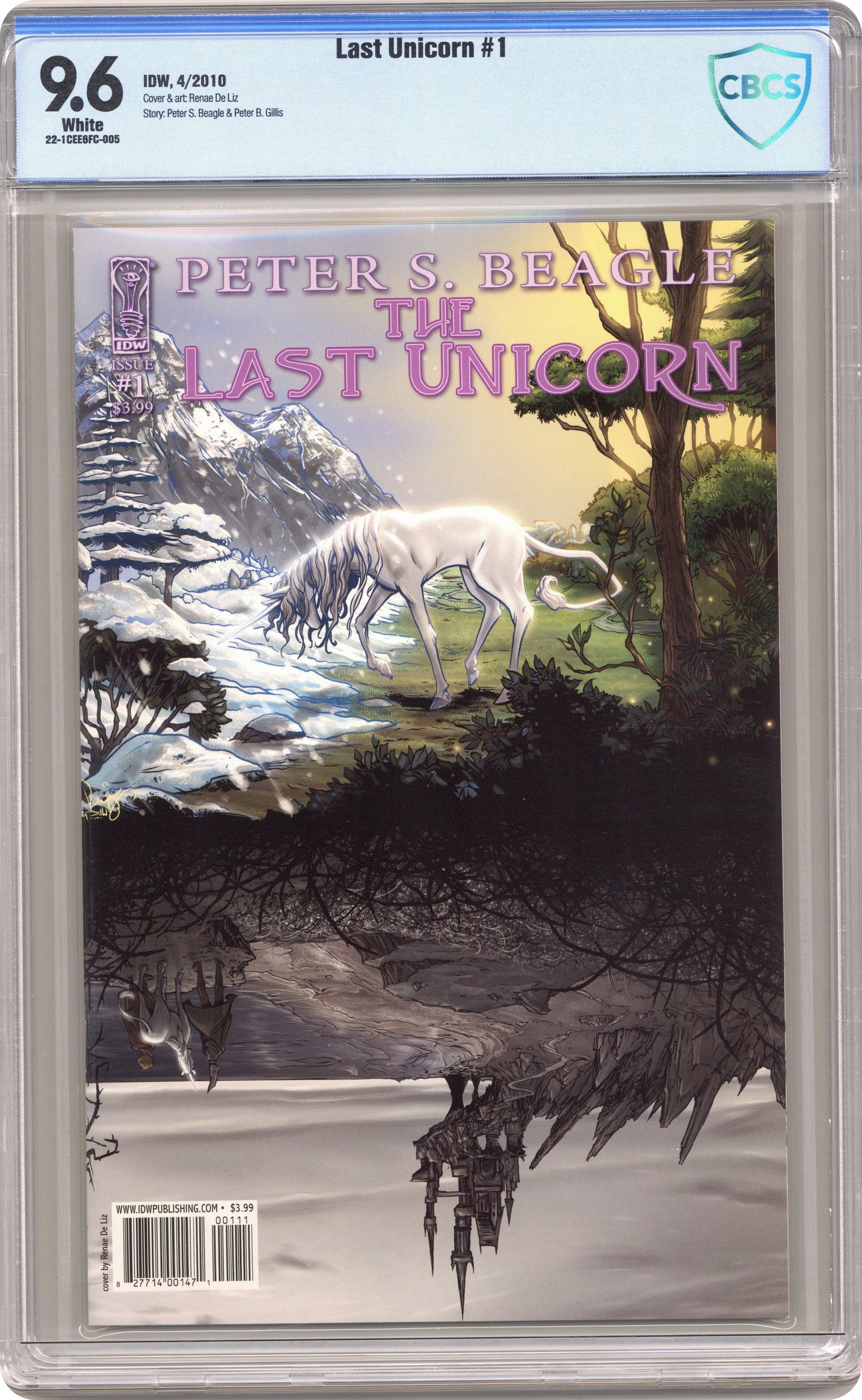 Cover by Renae de Liz. Whimsical. Lyrical. Poignant. Adapted for the first time from the acclaimed and beloved novel by Peter S. Beagle, The Last Unicorn is a tale for any age about the wonders of magic, the power of love, and the tragedy of loss. The unicorn, alone in her enchanted wood, discovers that she may be the last of her kind. Reluctant at first, she sets out on a journey to find her fellow unicorns, even if it means facing the terrifying anger of the Red Bull and malignant evil of the king who wields his power. Adapted by Peter B. Gillis and lushly illustrated by Renae De Liz and Ray Dillon. Cover price $3.99. Grade: CBCS 9.6 explanation of grade Condition: Used (collectible)