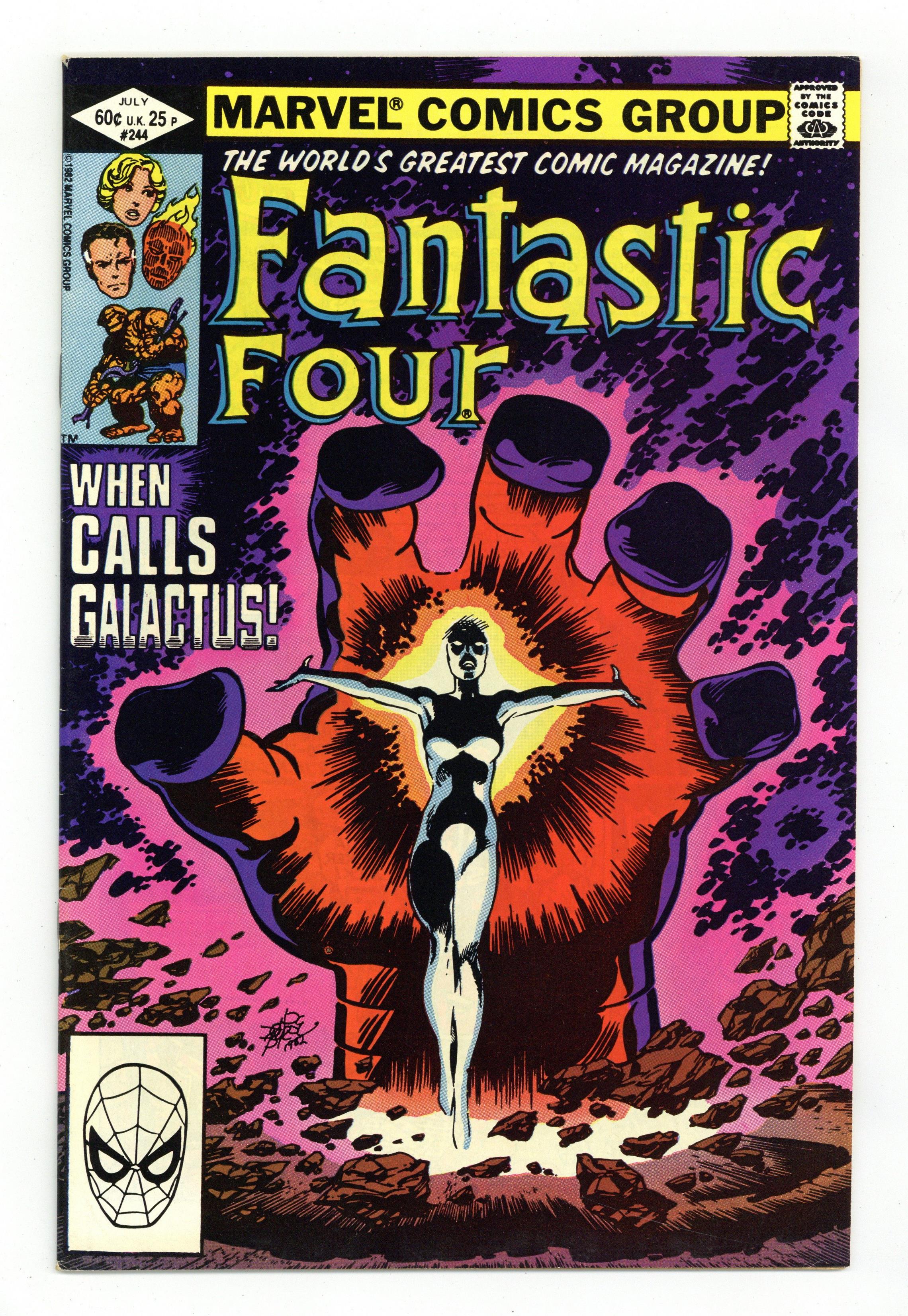 Direct Edition. "Beginnings and Endings" Part 3 of 3. Script and Art by John Byrne. Cover by John Byrne. After an unprecedented victory over Galactus, the Avengers and the Fantastic Four face a major ethical decision: should they try to save the Ravager of Worlds or let him perish as his energies dwindle? Reed decides on the former and constructs a giant machine to revitalize Galactus! However, the Devourer of Worlds needs one more thing to complete his recovery...a new herald! In a stunning move, Frankie Raye volunteers! So where does that leave the Human Torch? First appearance of Nova (aka Frankie Raye). Cameo appearances by Captain America, Iron Man, Thor, Wasp, and Doctor Strange. (Notes: This trilogy was reprinted in 1989 in the trade paperback titled "Fantastic Four: Trial of Galactus." Reed's decision to save Galactus will come back to haunt the FF beginning in Fantastic Four 257.) 36 pages Cover price $0.60. Grade: FN+ 6.5 explanation of grade Condition: Used (collectible)