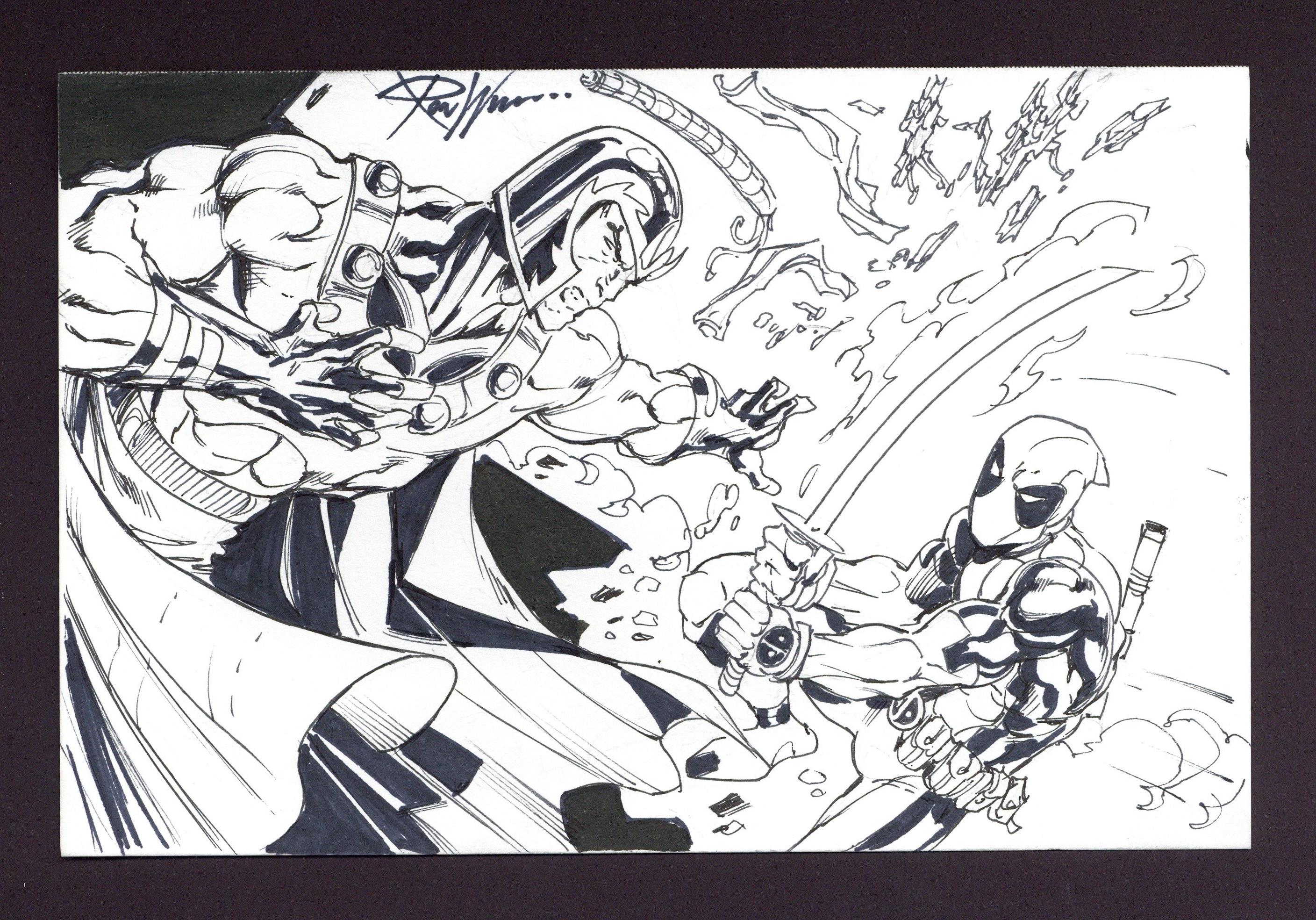 Signed by the artist. Pencil and ink on heavy stock. 5 1/2" x 8 1/2", B&W.