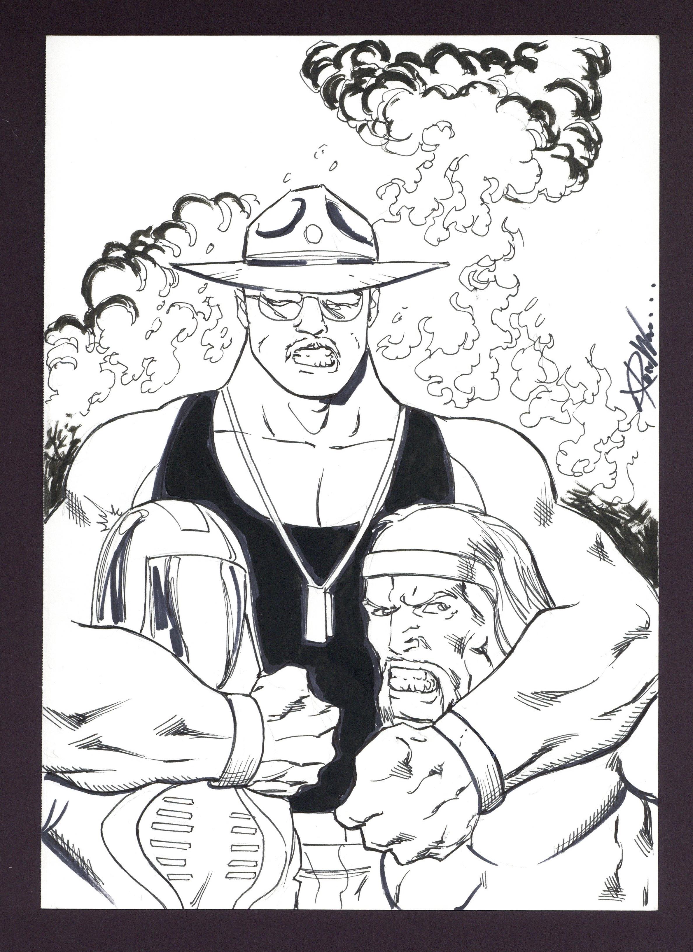 Sgt. Slaughter vs. Cobra Commander and Hulk Hogan Sketch by Ron Williams