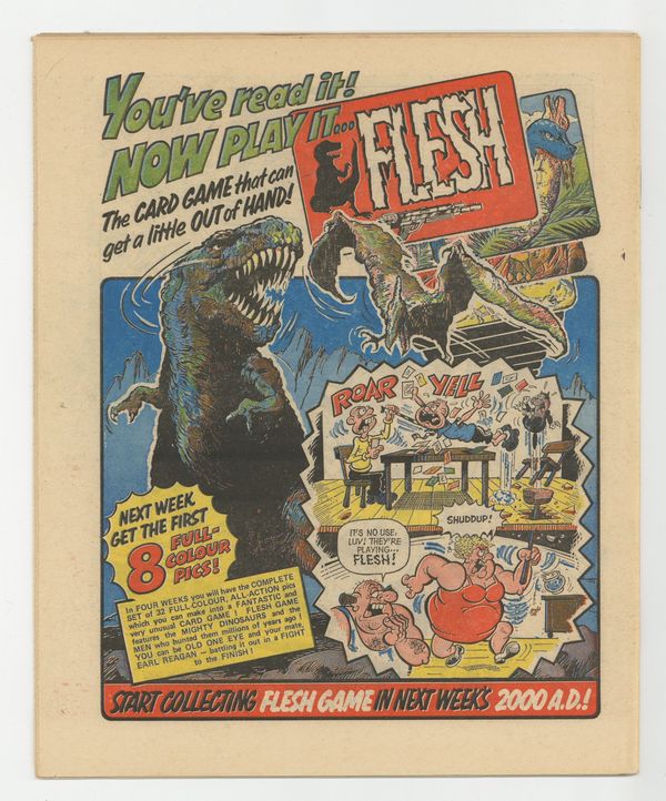 Ended Jul 11 2023 Winning Bid $98 Cover by Massimo Belardinelli. April 9, 1977. Prog: 07 Featuring Invasion "Train Story," written by Pat Mills, art by Sarompa; Savage and his resistance group, Mad Dog, suffer losses as betrayal comes from within. Doctor Who Action Games Weetabix ad. Dan Dare (Part 7 of 11), written by Kelvin Gosnell, art by Massimo Belardinelli; "The only thing this super-bug is going to eat is... LIVING AXE!" Judge Dredd in "The Statue of Judgement," written by Malcolm Shaw, art by Mike McMahon; As The Statue of Judgement is unveiled, a gang roughs up another. Dredd sets the record straight. Flesh: Book 1 (Part 7 of 19), written by Kelvin Gosnell, art by Ramon Sola; Old One Eye, blinded by toxic fumes, leaves Carver and Reagan behind as they make the long journey home on foot. Harlem Heroes (Part 7 of 27), written by Tom Tully, art by Dave Gibbons; The Harlem Heroes' game against the Siberian Wolves continues. M.A.C.H.1 "Bolivia," written by Pat Mills, art by Enio; Probe turns off his hyperpower to convince Colonel Villarcho and his men that he's as "weak as a baby." Flesh ad. 32 Pgs., B&W. 0.08 GBP. Grade: VF- 7.5 explanation of grade Condition: Used (collectible)