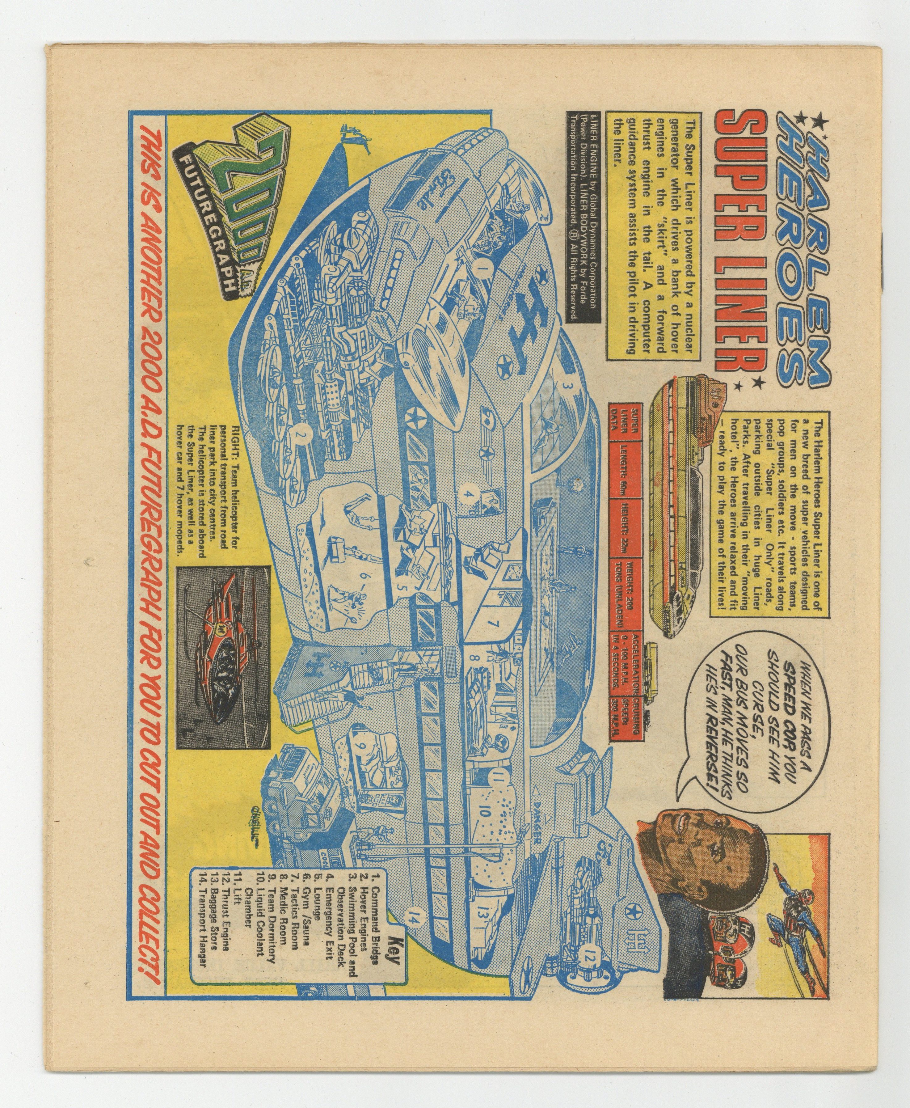 Ended Jul 11 2023 Winning Bid $98 Cover art by Mike Dorey. April 2, 1977. Prog: 06 Featuring Invasion "Wembley," written by Gerry Finley-Day, art by Ian Kennedy; Savage and his gang strike back at the execution of innocent victims by staging a firing squad of their own. Dan Dare (Part 6 of 11), written by Kelvin Gosnell, art by Massimo Belardinelli; The history of the Biogs and Shepherds is told, though Dan and Monday balk at the idea of becoming Biog fuel. Judge Dredd in "Frankenstein II" Written by Malcolm Shaw, Art by Mike McMahon; Judge Dredd busts up an illegal Transplant Surgery operation. Flesh: Book 1 (Part 6 of 19), written by Kelvin Gosnell, art by Ramon Sola; As the town burns, Carver, One Eye, and Reagan have a final showdown. Harlem Heroes (Part 6 of 27), written by Tom Tully, art by Dave Gibbons; The Harlem Heroes travel to Russia for their match against the Siberian Wolves who, per the American commenter, "all look the same to me, folks, so I'll have to go by numbers...I'll call them all Boris!" M.A.C.H.1 "Himmler's Gold," written by Pat Mills, art by Mike Dorey. M.A.C.H. 1, who always eats his "sunshine breakfast", stops Colonel Kreuzer's Nazi plan to retrieve sunken gold. Futuregraph Harlem Heroes illustration by Kevin O'Neill. 32 Pgs., B&W. 0.08 GBP. Grade: VF 8.0 explanation of grade Condition: Used (collectible)