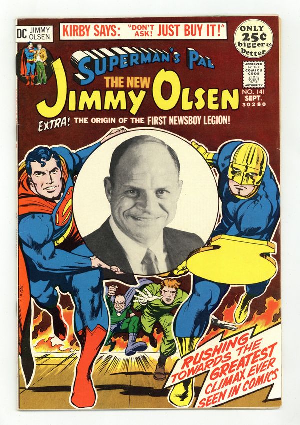 Ended Jan 10 2024 Winning Bid $15 Cover pencils by Jack Kirby, inks by Neal Adams. Will The Real Don Rickles Panic?!?, script by Jack Kirby, pencils by Jack Kirby and Murphy Anderson (Superman and Jimmy Olsen heads), inks by Vince Colletta; Lightray helps Superman escape the UFO, while Jimmy, Goody Rickles, and the Guardian foil Ugly Mannheim's plot to kill them. The Newsboy Legion Returns, script by Mark Evanier and Steve Sherman, pencils by Jack Kirby. Kirby at his drawing board illustration. Untitled Newsboy Legion, script by Jack Kirby and Joe Simon, pencils by Jack Kirby, inks by Joe Simon. 52 Pages, Full Color. Cover price $0.25. Grade: FN 6.0 explanation of grade Condition: Used (collectible)