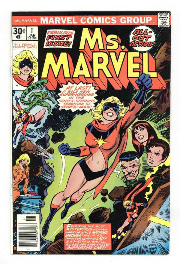 Ended Jun 21 2023 Winning Bid $36 John Romita/Dick Giordano cover. John Buscema art. Gerry Conway script. Joe Sinnott/David Hunt inks. Marie Severin colors. "This Woman, This Warrior" Carol Danvers meets Peter Parker, J. Jonah Jameson, Mary Jane Watson, and battles the Scorpion when she gets a job at the Daily Bugle as a fashion editor. Intro Ms. Marvel, Carol Danvers, who last appeared in Captain Marvel # 40. 1st appearance of Ms Marvel. 36 pages, full color. Cover price $0.30. Grade: VG- 3.5 explanation of grade Condition: Used (collectible)