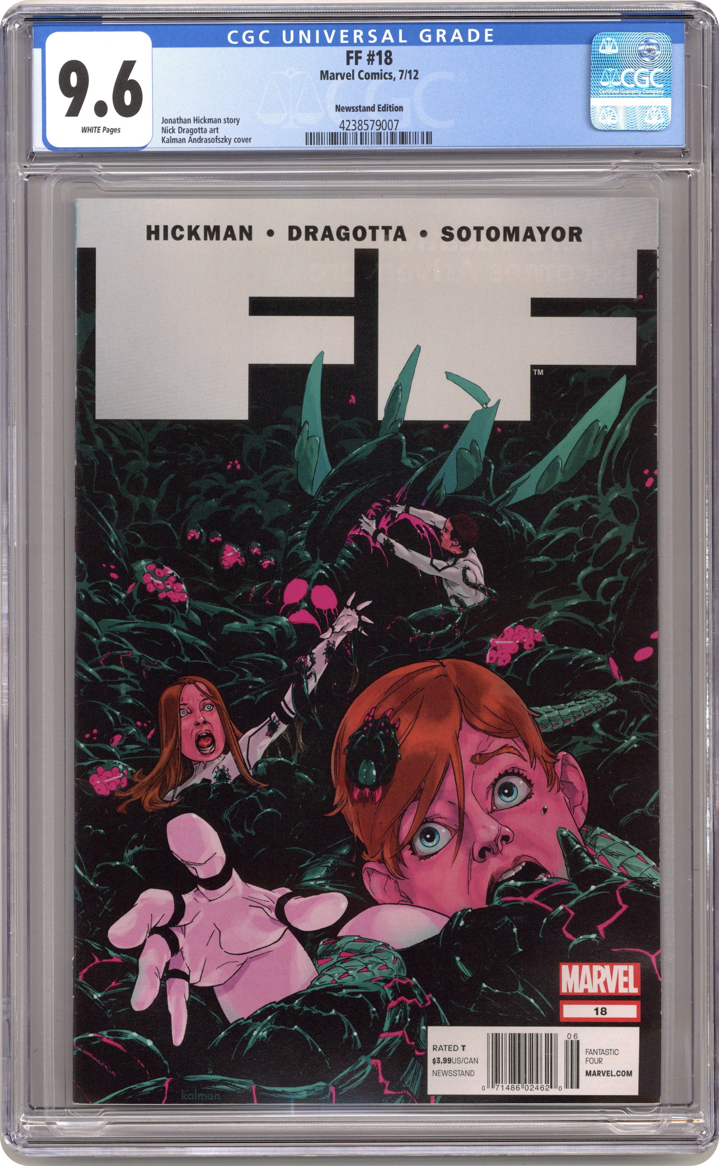Ended Jun 21 2023 Winning Bid $14 (W) Jonathan Hickman. (A) Nick Dragotta. (CA) Kalman Andrasofszky. "Field Trip" The kids take their first Field Trip - to the Negative Zone. The Return of Future Franklin and Val. See what happens when Annihilus goes home. Cover price $2.99. Grade: CGC 9.6 explanation of grade Condition: Used (collectible)