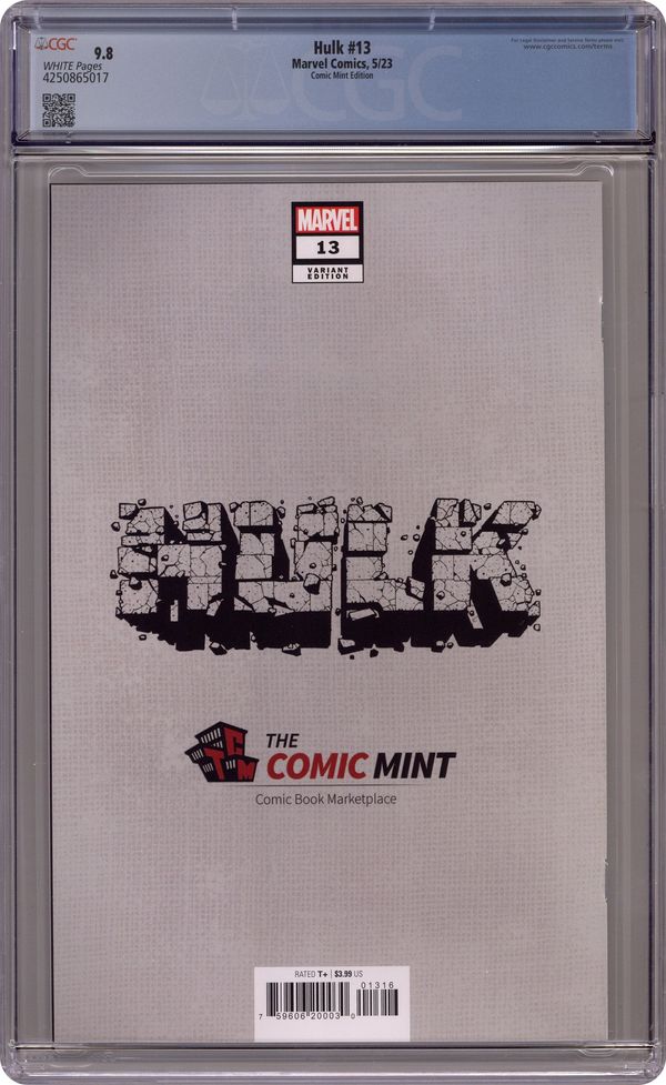 Hulk (2022 Marvel) 13COMICMINT CGC 9.8 McNiven Comic Mint Virgin Variant
