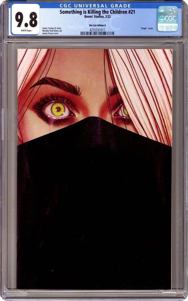 Published Mar 2022 by Boom Studios.Something Is Killing the Children (2019 Boom) 21B CGC 9.8 Frison Die-Cut Variant