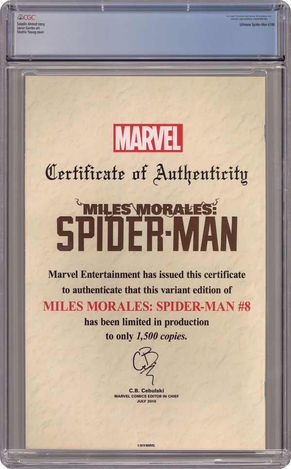 Miles Morales Spider-Man (2019 Marvel) 8SDCC CGC 9.8 Young SDCC Variant