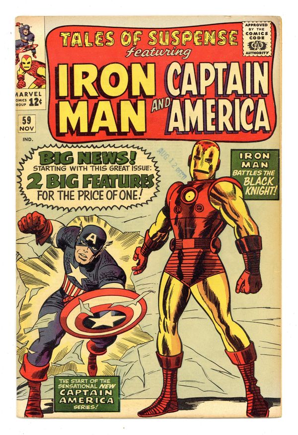 Cover pencils by Jack Kirby, inks by Dick Ayers. Iron Man and Captain America double feature begins. The Avengers guest star in the Iron Man story, "The Black Knight," script by Stan Lee, pencils by Don Heck, inks by Chic Stone; Iron Man battles the Black Knight; Wasp, Giant-Man, Captain America, and Thor appear. Part of the story continues in "Captain America," the first Silver Age Captain America solo story, script by Stan Lee and Jack Kirby (co-plot), pencils by Jack Kirby, inks by Chic Stone; While Cap lounges around Avengers Mansion, thinking about Bucky and his place in the world, a gang of costumed thugs break in intent on stealing any secrets or weapons Stark may have lying about the place, to sell for profit; They figure Cap's "just an acrobat"; Bucky Barnes cameo; First appearance of Jarvis (the Avengers' butler). Letters page begins. 36 pages, full color. Cover price $0.12. Grade: VG+ 4.5 explanation of grade Condition: Used (collectible)