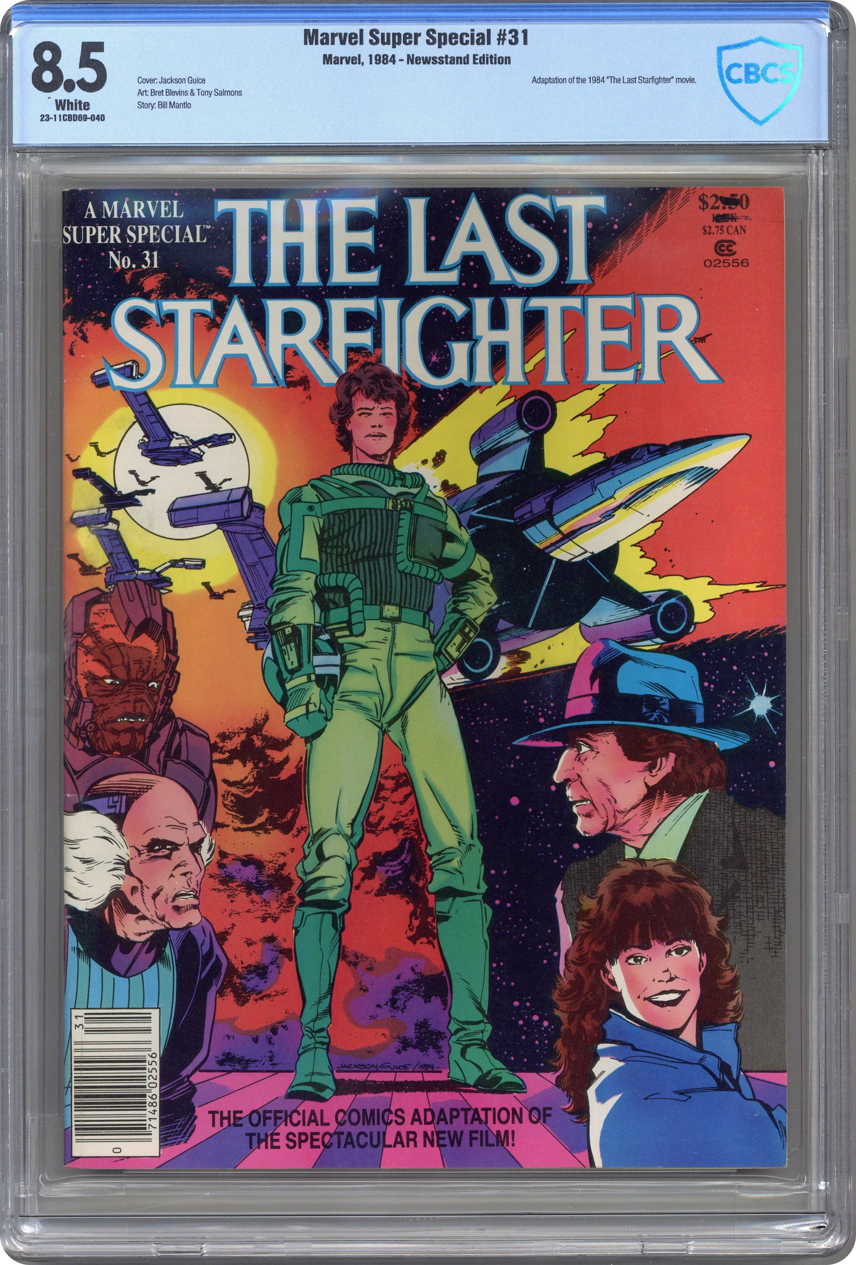 Ended Jun 21 2024 Winning Bid $21 The Last Starfighter. The official comic book adaptation of the 1984 science fiction adventure film. A teenage video-gamer becomes the last hope for an alien race. Written by Bill Mantlo, with art by Bret Blevins and Tony Salmons. Story later reprinted in The Last Starfighter #1-3. Cover by Jackson Guice. Full color; 68 pages. Cover price $2.50. Grade: CBCS 8.5 explanation of grade Condition: Used (collectible)