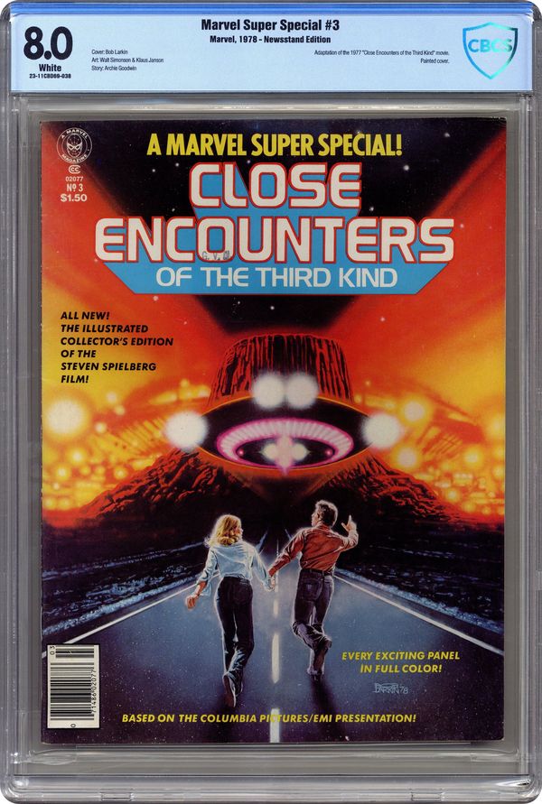Ended Jun 25 2024 Winning Bid $29 Close Encounters of the Third Kind. The official comic book adaptation of the Steven Spielberg film. Written by Archie Goodwin with art by Walt Simonson and Klaus Janson. If the characters look strange, it's because Marvel did not get the rights to use the movie actors likeness. Full color. Painted cover by Bob Larkin. Cover price $1.50. Grade: CBCS 8.0 explanation of grade Condition: Used (collectible)