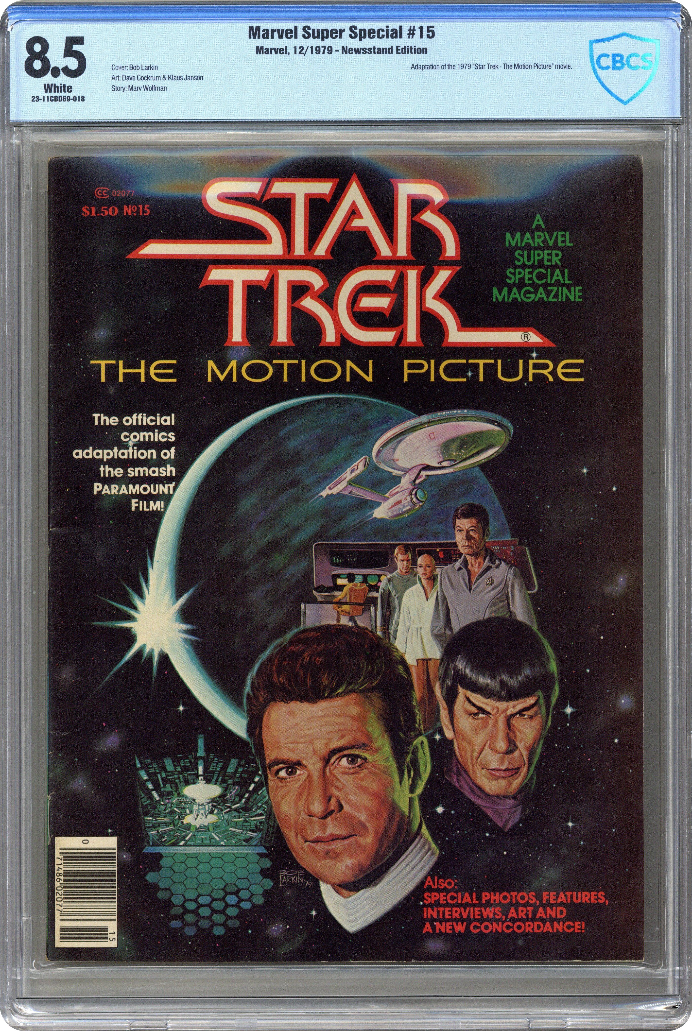 Ended Jun 19 2024 Winning Bid $29 Star Trek: The Motion Picture. The official comic book adaptation of the first Star Trek film. Written by Marv Wolfman, with art by Dave Cockrum and Klaus Janson. Includes a look at the science, history and lore of Star Trek. The first Marvel Star Trek comic. Full color; 68 pages. Painted cover by Bob Larkin. Cover price $1.50. Grade: CBCS 8.5 explanation of grade Condition: Used (collectible)
