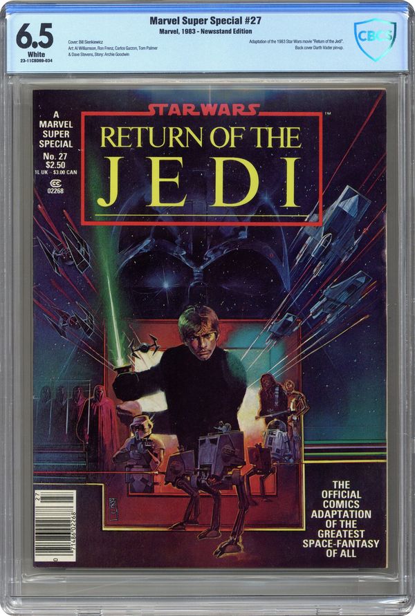 Ended Jan 29 2024 Winning Bid $25 Star Wars: Return of the Jedi. The official comic book adaptation of the George Lucas classic. Luke Skywalker confronts his destiny while the Rebellion launches a desperate strike against the Empire. Written by Archie Goodwin, with art by Al Williamson and Carlos Garzon. Story later reprinted in Return of the Jedi #1-4. Full color; 64 pages. Cover price $2.50. Grade: CBCS 6.5 explanation of grade Condition: Used (collectible)