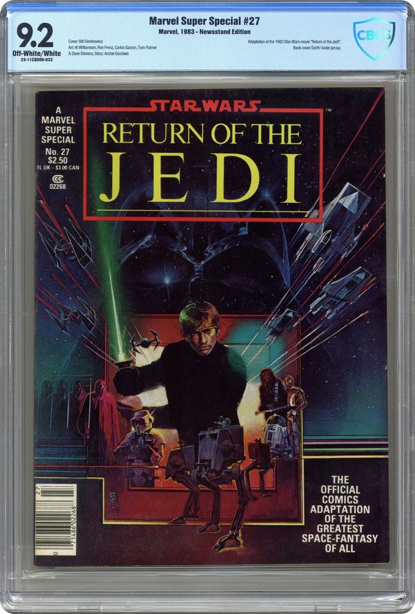 Ended Jul 2 2024 Winning Bid $40 Star Wars: Return of the Jedi. The official comic book adaptation of the George Lucas classic. Luke Skywalker confronts his destiny while the Rebellion launches a desperate strike against the Empire. Written by Archie Goodwin, with art by Al Williamson and Carlos Garzon. Story later reprinted in Return of the Jedi #1-4. Full color; 64 pages. Cover price $2.50. Grade: CBCS 9.2 explanation of grade Condition: Used (collectible)