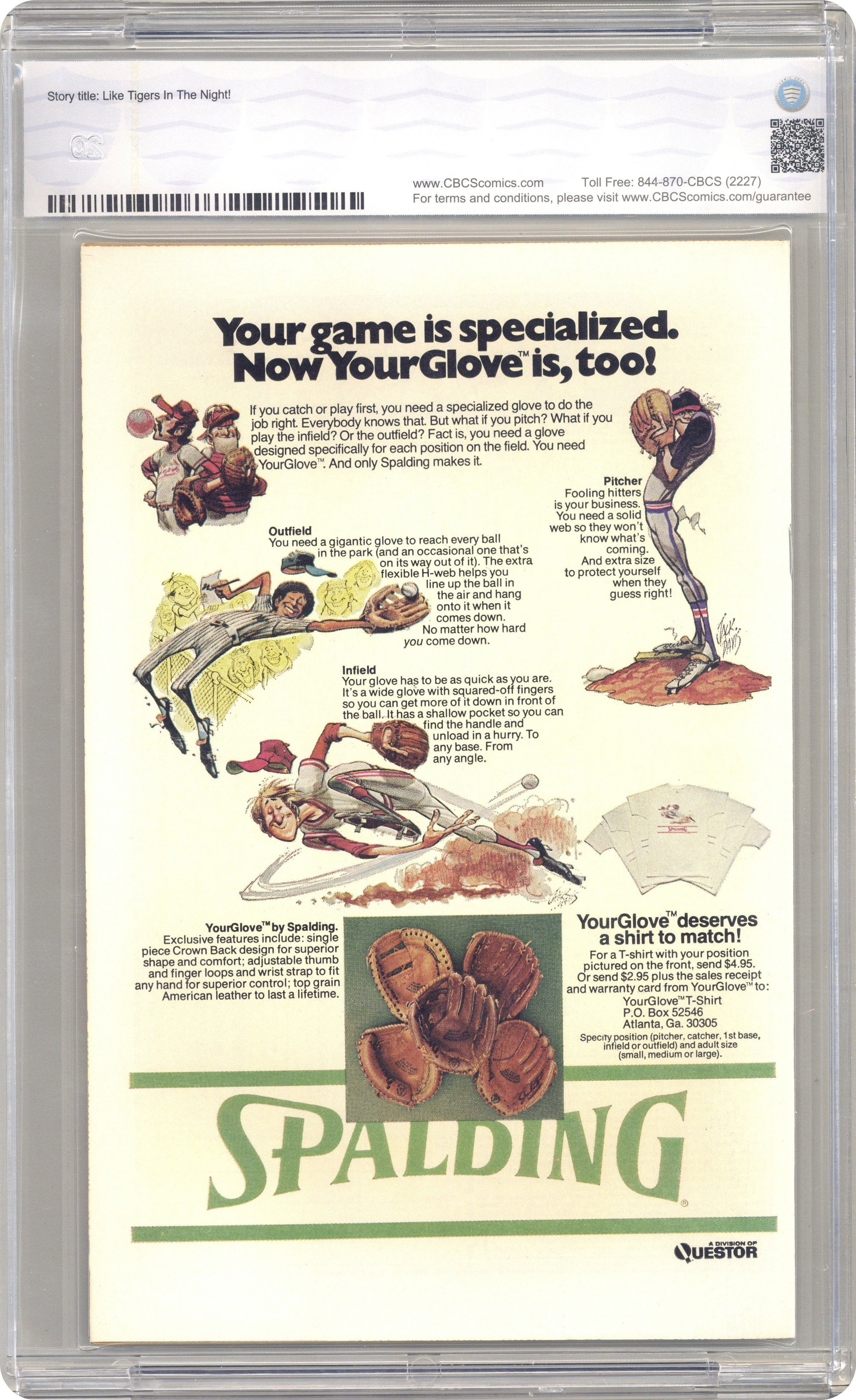 "Like Tigers in the Night!" Story by Chris Claremont. Art by John Byrne and Dan Adkins. Meet Chaka, Crimelord of New York. Plus, get a look at Daniel Rand's past and bare witness to the tragic day a young boy's parents died. Cover price $0.30. Grade: CBCS 9.6 explanation of grade Condition: Used (collectible)