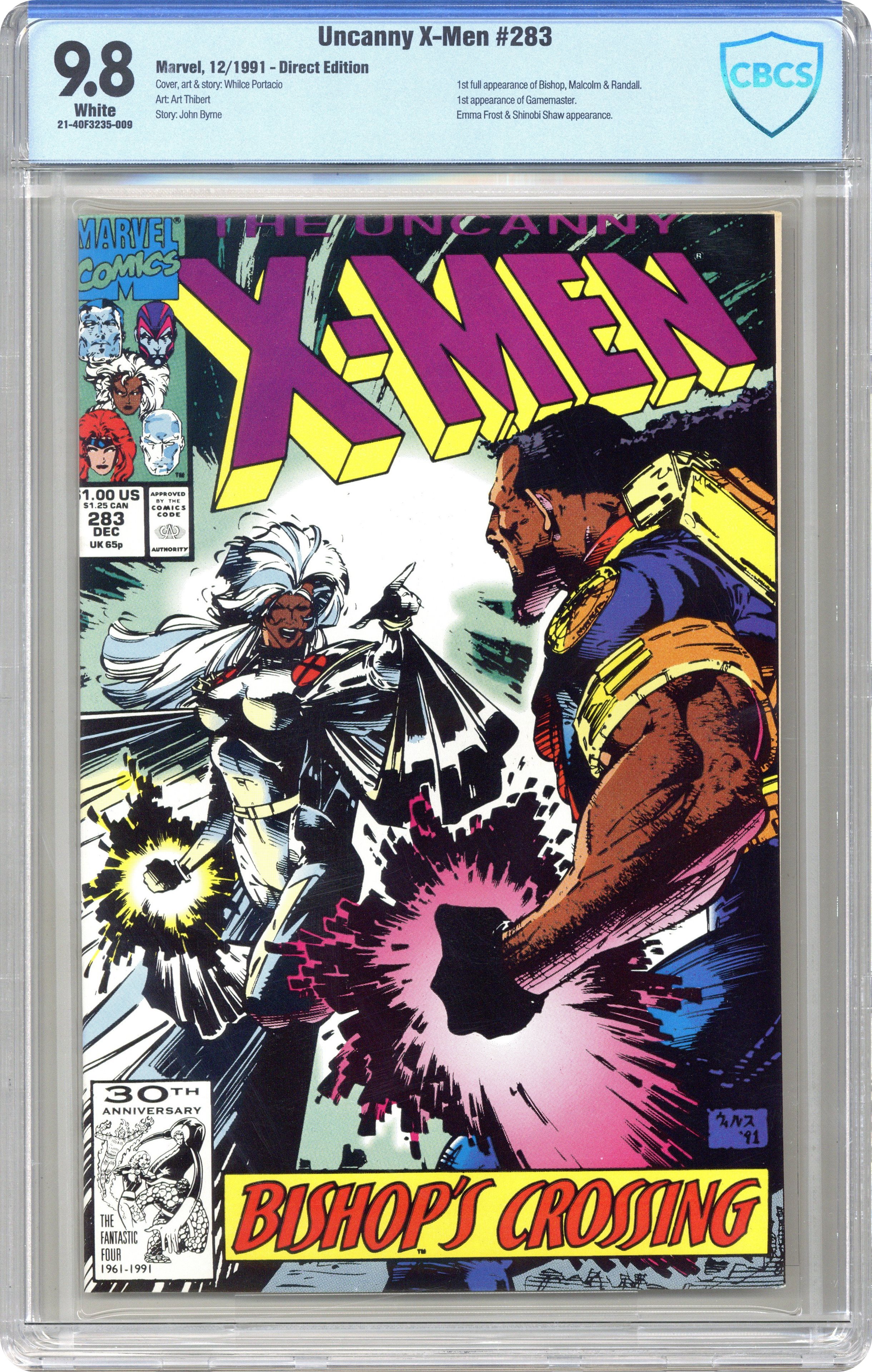 Ended Feb 6 2024 Winning Bid $52 1st full appearance of Bishop. "Bishop's Crossing!" Story by Whilce Portacio and John Byrne. Art by Whilce Portacio and Art Thibert. His name is Bishop, and he's arrived here from the future to set the wrong things right. Even if he has to go through the X-Men to do it. Plus, whatever happened to Jean Grey and Emma Frost? 36 pgs. Cover price $1.00. Grade: CBCS 9.8 explanation of grade Condition: Used (collectible)