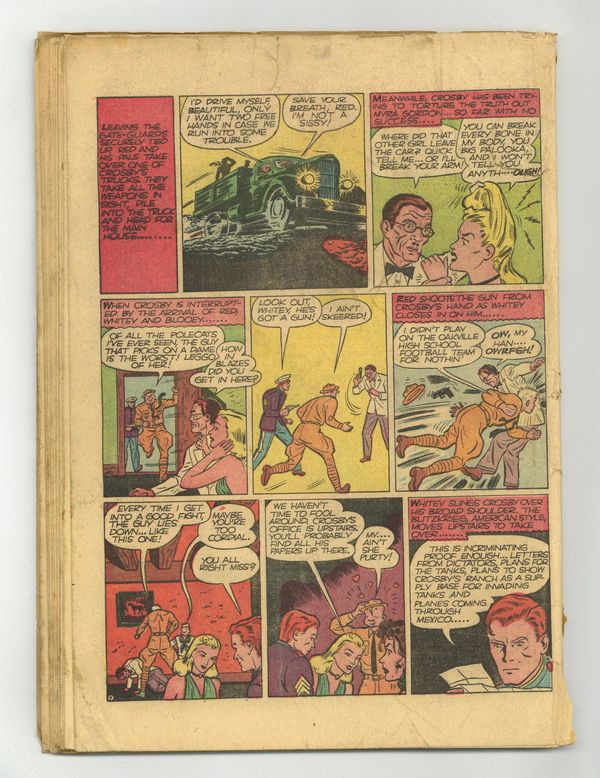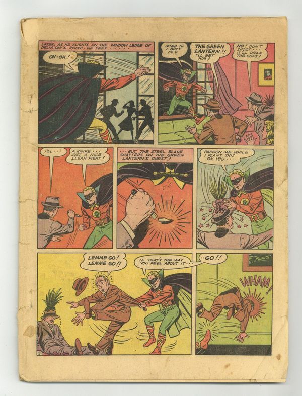 Cover art by Sheldon Moldoff. The Sins of the Father, script by Bill Finger, art by Everett E. Hibbard [as Mart Dellon]; Accompanying Irene on an interview with movie star Delia Day, Alan Scott becomes suspicious spying her talking to hoodlum "Slug" Kafey; Taking action as Green Lantern, Scott discovers that Day is being blackmailed because her father is actually racketeer Al Maloney. After the Red Tornado starring Scribbly and the Red Tornado, script and art by Sheldon Mayer; When the Police learn that the Red Tornado is operating in the neighborhood, they attempt to capture her. Mutt and Jeff strips by Al Smith (as Bud Fisher). Believe It or Not by Robert L. Ripley. Charter Flight to Disaster starring Hop Harrigan, script and art by Jon L. Blummer. Joe's Appointment starring The Atom, script by Bill O'Connor, pencils by Ben Flinton, inks by Leonard Sansone. Rescue on Mars: Part 4--Adventures in the Unknown, script by Carl H. Claudy, art by Stan Aschmeier. The Worthless Stock starring Ben Webster, script and art by Russell Cole [as Edwin Alger]. The Mysterious Murder of the Texas Ranger starring Red, White and Blue, art by William Smith. 68 pgs. $0.10. Cover price $0.10. Grade: Coverless explanation of grade Condition: Used (collectible)
