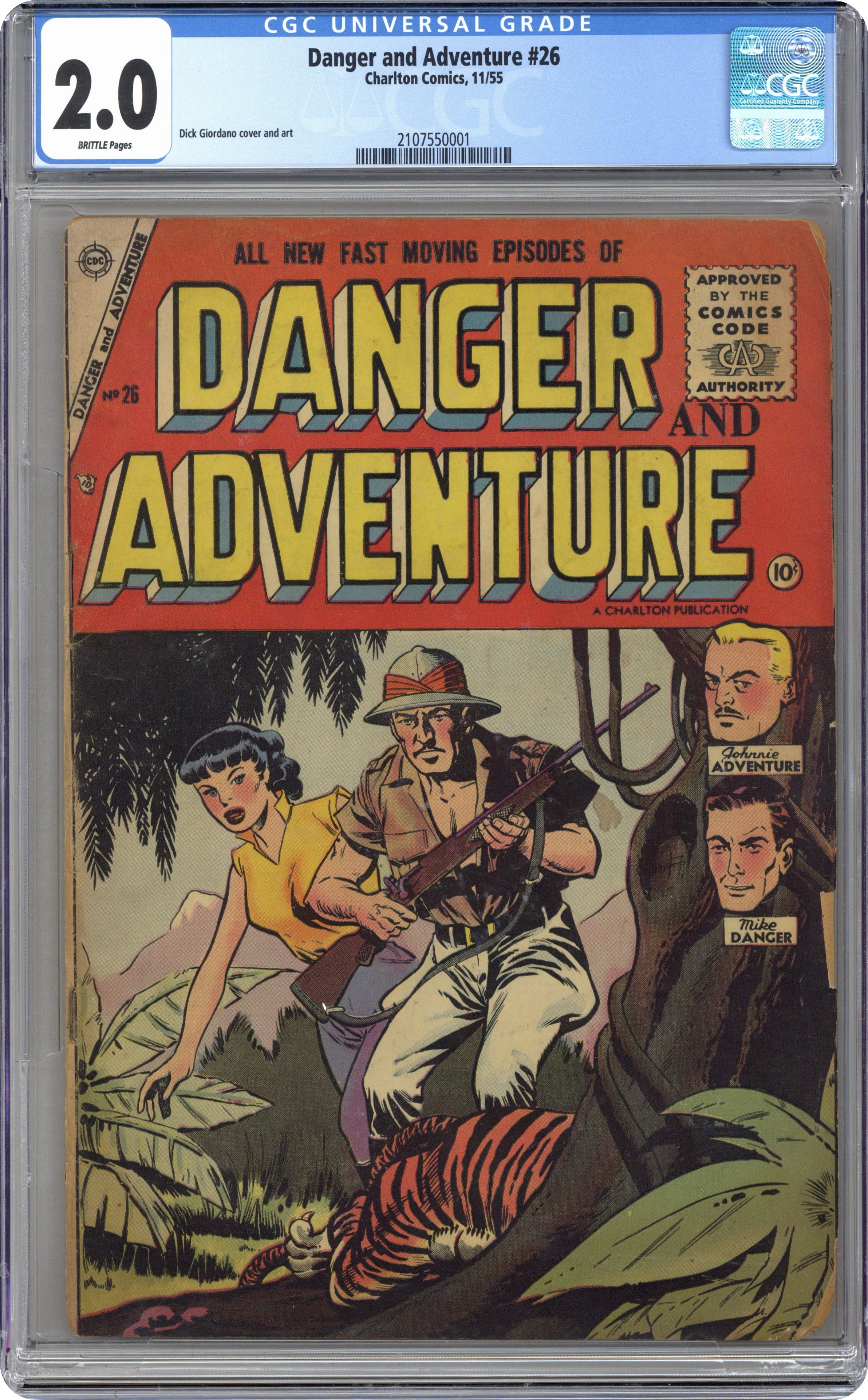 Published Nov 1955 by Charlton Comics Group.Danger and Adventure (1955) 26 CGC 2.0