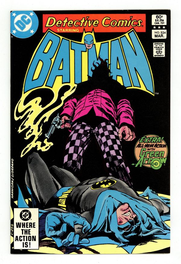 Direct Edition. Cover pencils by Ed Hannigan, inks by Dick Giordano. "Deathgrip," script by Gerry Conway, pencils by Don Newton, inks by Dick Giordano; Story continued from Batman #357. Batman escapes the Squids giant-squid deathtrap, but the Squid himself is assassinated by Croc. "Mob Rule! II: Heat of the Moment!", script by Joey Cavalieri, pencils by Irv Novick, inks by Ron Randall; Green Arrow finally defeats the Executrix with reflector-signal arrows and pumps her for information about Machiavelli; In the meantime, Machiavelli is huddling with the Wall Street Irregulars and convinces them that criminals can run Star Citys government better than its elected officials; Later, Machiavelli and his group crash a town meeting on the anti-strike clause, at which the villain gives a political speech and is greeted with Mac for mayor! cries. 1st appearance Jason Todd (cameo only). 36 pgs., full color. $0.60. Cover price $0.60. Grade: VF 8.0 explanation of grade Condition: Used (collectible)