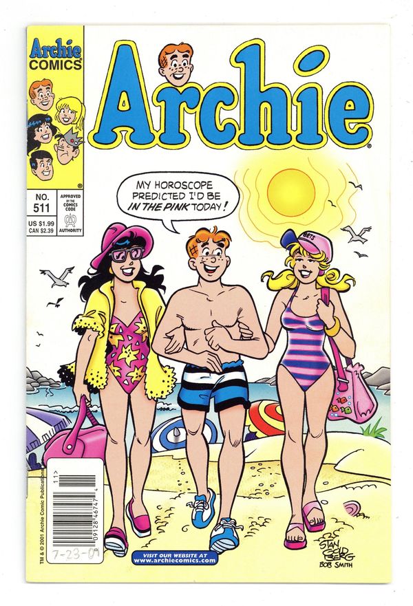 by Various & Stan Goldberg. "The More Things Change, The More They Stay The Same" (script by Kathleen Webb): Looking for a little variety, Archie decides he'll find himself a new summer love, but he finds out a day at the beach ISN'T a day at the beach, when every girl he meets is just like Betty or Veronica! "Beach A-Go-Go" (script by Mike Pellowski): Archie dives sand-first into beach sports, but when the day is done, the only sport he's interested in is marathon napping! "Vacation Blues" (script by George Gladir): Mr. Lodge decides to spend a nice, quiet summer vacation at home, but with Archie on the scene, he'll definitely need to get away! "The Dream Job" (script by George Gladir): Archie's a real character ? literally, when he gets a summer job wearing mascot costumes at the Ditzyland theme park. 32 pages, full color. Cover price $1.99. Grade: FN 6.0 explanation of grade Condition: Used (collectible)