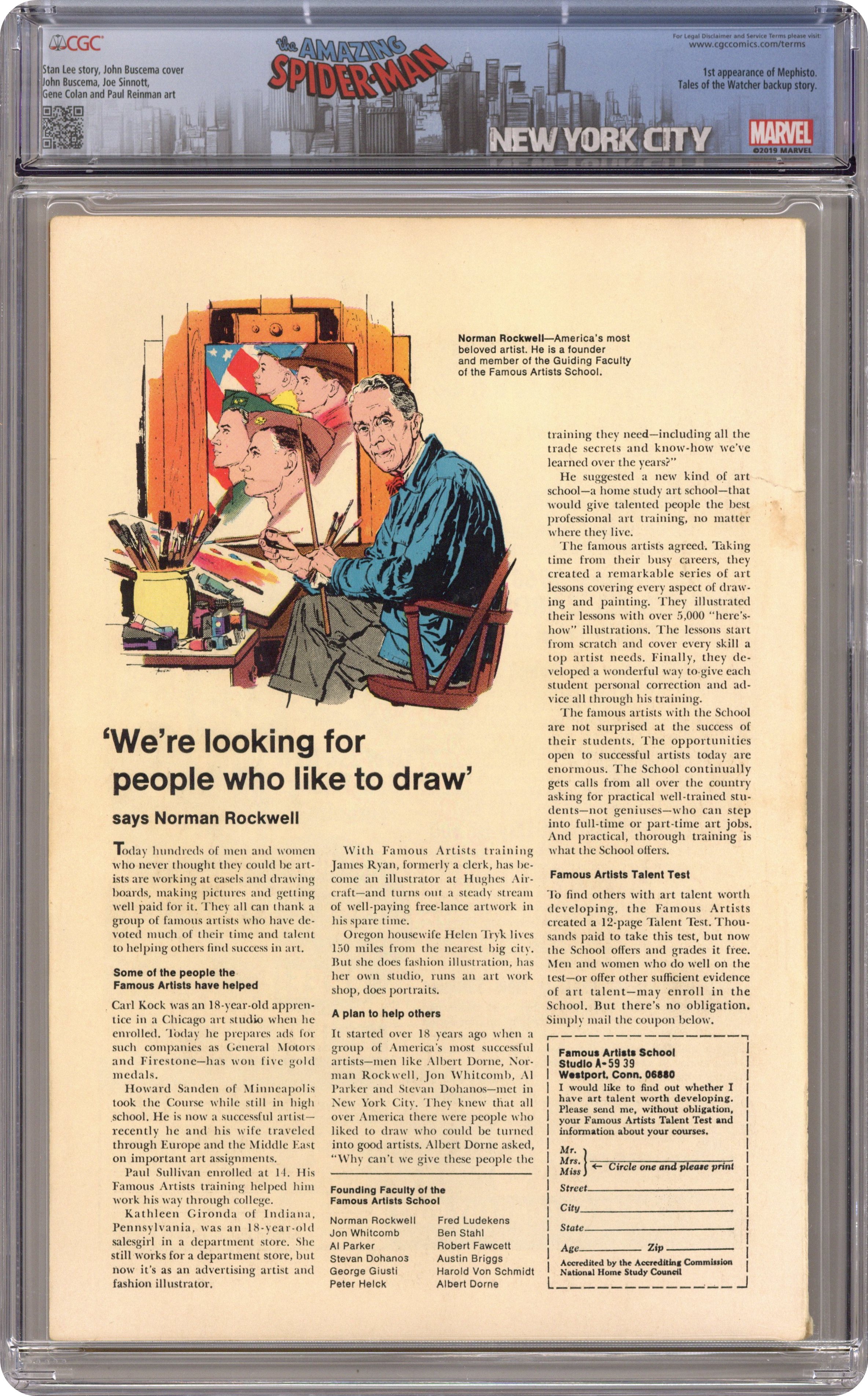 Ended Oct 11 2023 Winning Bid $301 1st appearance of Mephisto. "The Power and the Prize!" Written by Stan Lee. Art and cover by John Buscema and Joe Sinnott. The valiant Silver Surfer comes face-to-face with the sinister creature who would go on to become his greatest adversary and one of the greatest forces for evil in the Marvel Universe, Mephisto! When the Lord of the Underworld kidnaps Shalla Bal, Norrin Radd has no choice but to venture into the stygian depths and face the devil himself to save the woman he loves. Includes the Watcher back-up "Why Won't They Believe Me?" Story by Stan Lee. Art by Gene Colan and Paul Reinman. Letter to the editor from comic writer Tony Isabella. 68-page giant. Cover price $0.25. Grade: CGC 5.0 explanation of grade Condition: Used (collectible)