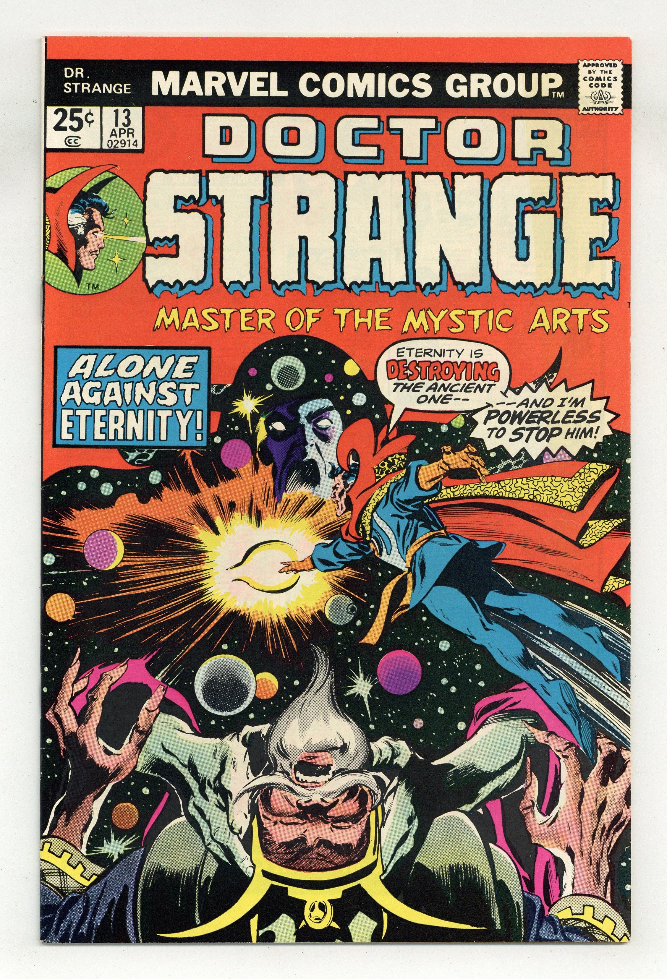 Cover pencils by Gene Colan, inks by Tom Palmer. Planet Earth is No More!, script by Steve Englehart, pencils by Gene Colan, inks by Tom Palmer; Strange enters Dimension of Dreams, defeats Nightmare, & releases Eternity. Nightmare had caused Eternity to dream the end of the Earth; The Ancient One intervenes, & Eternity recreates Earth. Appearance by Clea. Story continues in Tomb of Dracula 44. The letters page contains Marvel Value Stamp series B #72 (Thor by Jack Kirby). Cover price $0.25. Grade: VF+ 8.5 explanation of grade Condition: Used (collectible)