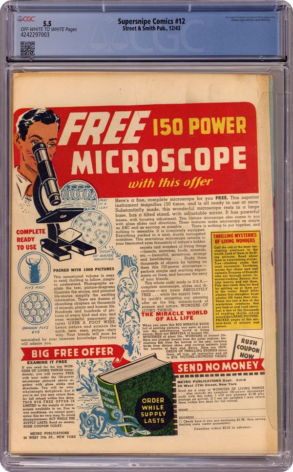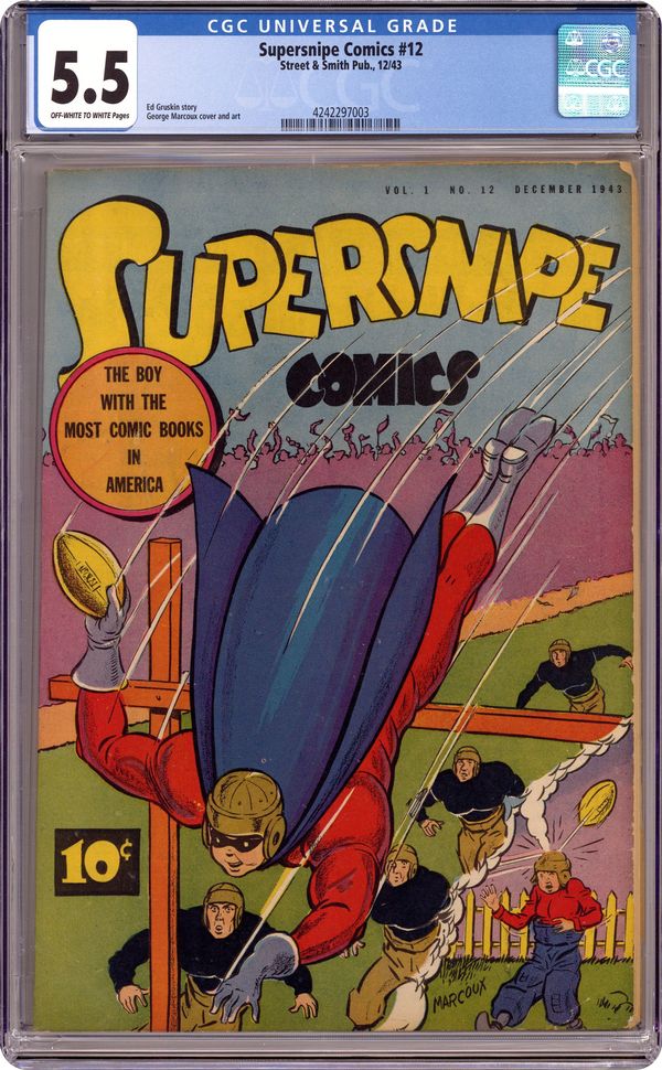 Published Dec 1943 by Street & Smith.Supersnipe Comics Vol. 1 (1942) 12 CGC 5.5