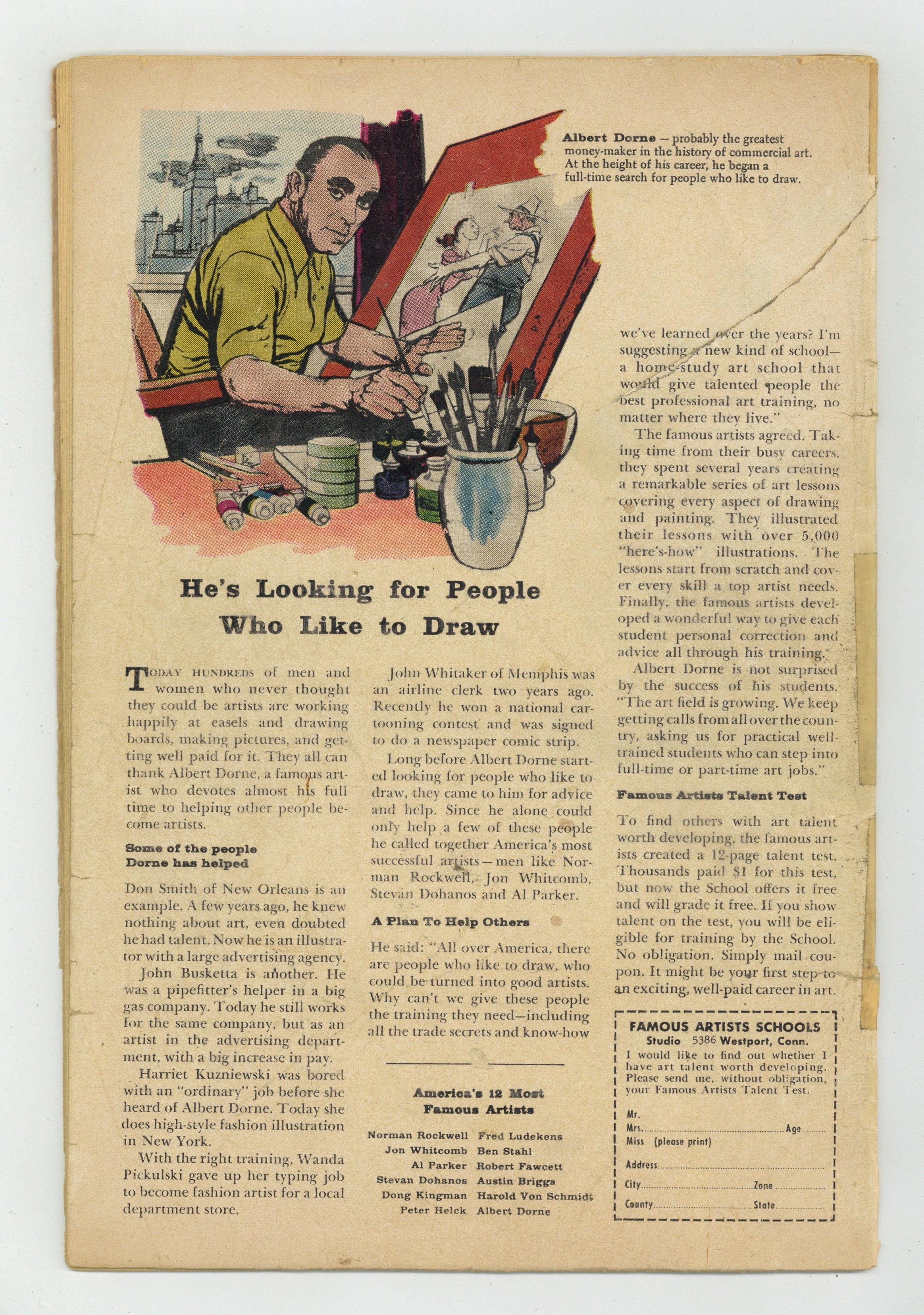 Ended Dec 5 2023 Winning Bid $39 Cover art by Steve Ditko. Why Won't They Believe Me?, script by Stan Lee, art by Steve Ditko; A man believes that he has discovered an alien invasion, but he is the real alien, and has amnesia. The Last Man on Earth; A paranoid man seals himself in a bomb shelter, but instead of a war, he misses the discovery of immortality in space and the exodus of humanity. Witch Hunt; A woman accused of witchcraft is exonerated, but discovers that her fiancé really is a witch. Journey's End. The Icy Fingers of Fear. All scripts by Stan Lee, all art by Steve Ditko. Every issue in this title contains wonderful O. Henry-style stores. This series was great while it lasted, but it was short-lived because Stan admitted he couldn't come up with twist-ending stories fast enough to meet the grinding monthly publishing deadlines. Little wonder, as he was also writing most other Marvel titles at the time. 36 pgs. $0.10. Cover price $0.12. Grade: FR 1.0 explanation of grade Condition: Used (collectible)