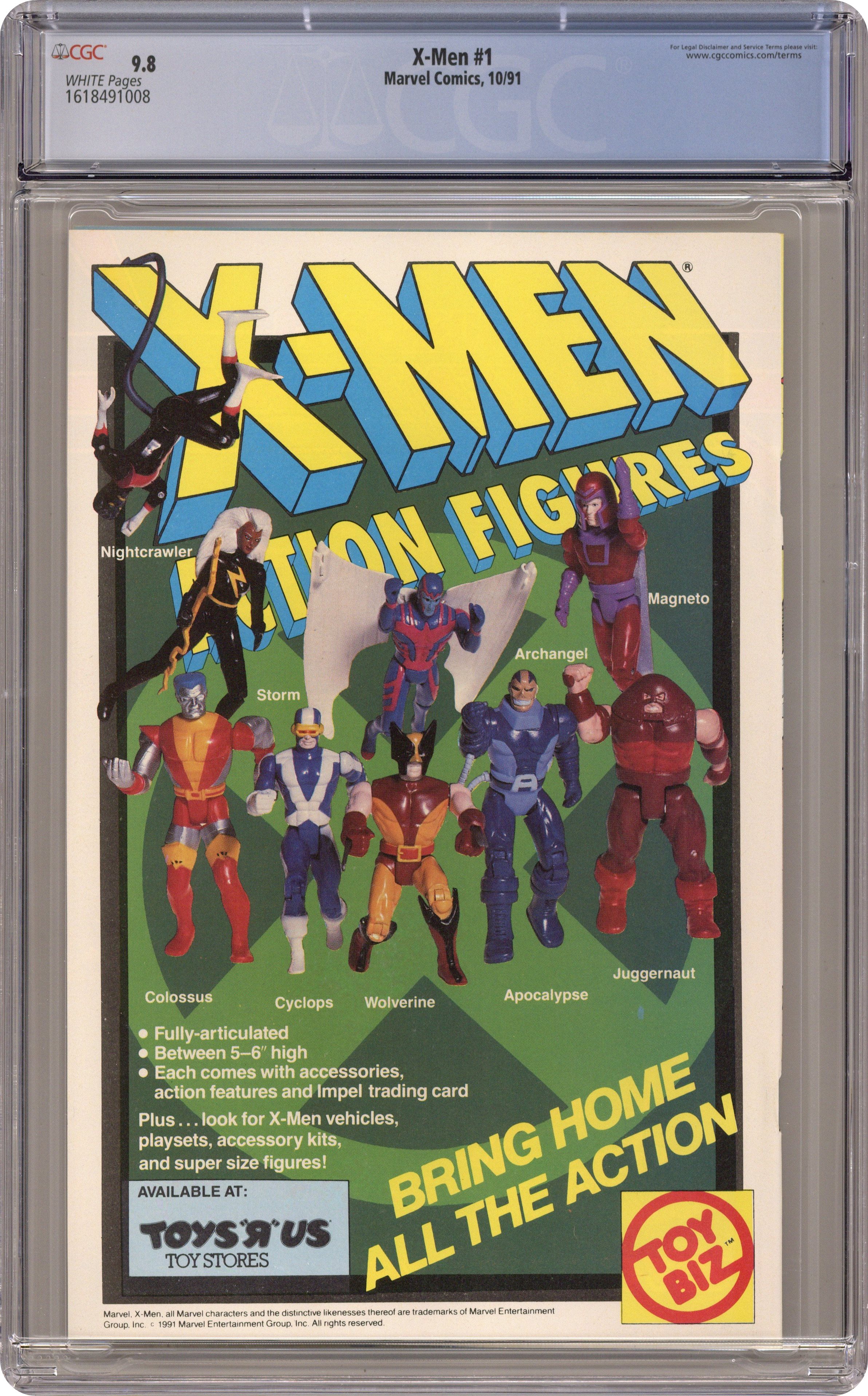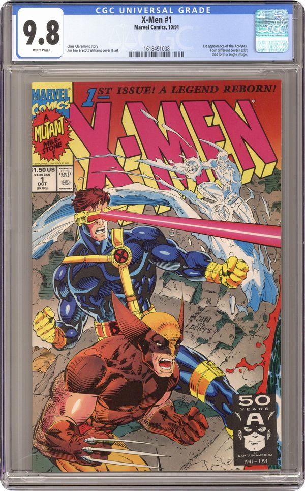 Direct Edition. Cyclops/Wolverine/Iceman cover. Cover pencils by Jim Lee, inks by Scott Williams. Rubicon, script by Jim Lee (Co-Plot) and Chris Claremont, pencils by Jim Lee, inks by Scott Williams; Magneto forms the Acolytes and proclaims Asteroid M a haven for mutants everywhere; But the rest of the world doesn't see it that way; Nick Fury cameo. 2-page pin-up: gallery of X-Men villains. X-Men Sketchbook by Jim Lee. Cover price $1.50. NOTE: Cover C connects to covers 1A, 1B, and 1D to form a single giant image. Cover price $1.50. Grade: CGC 9.8 explanation of grade Condition: Used (collectible)