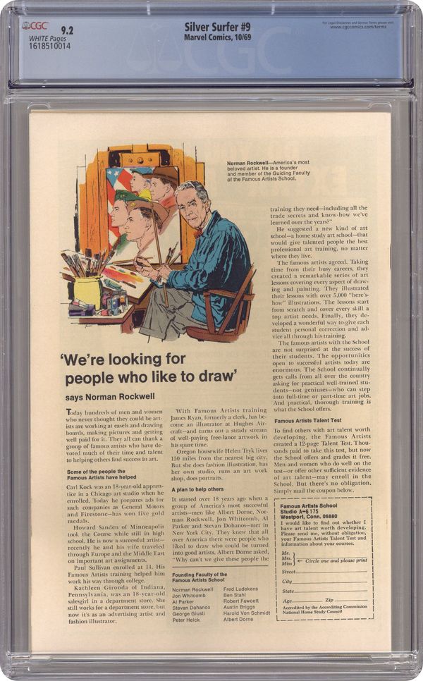 "...To Steal the Soul of the Silver Surfer!" Part 2 of 2. Written by Stan Lee. Art by John Buscema and Dan Adkins. The embodiment of evil in the Marvel Universe, Mephisto, has sent a powerful force for evil to bring him the soul of the Silver Surfer. Cover price $0.15. Grade: CGC 9.2 explanation of grade Condition: Used (collectible)