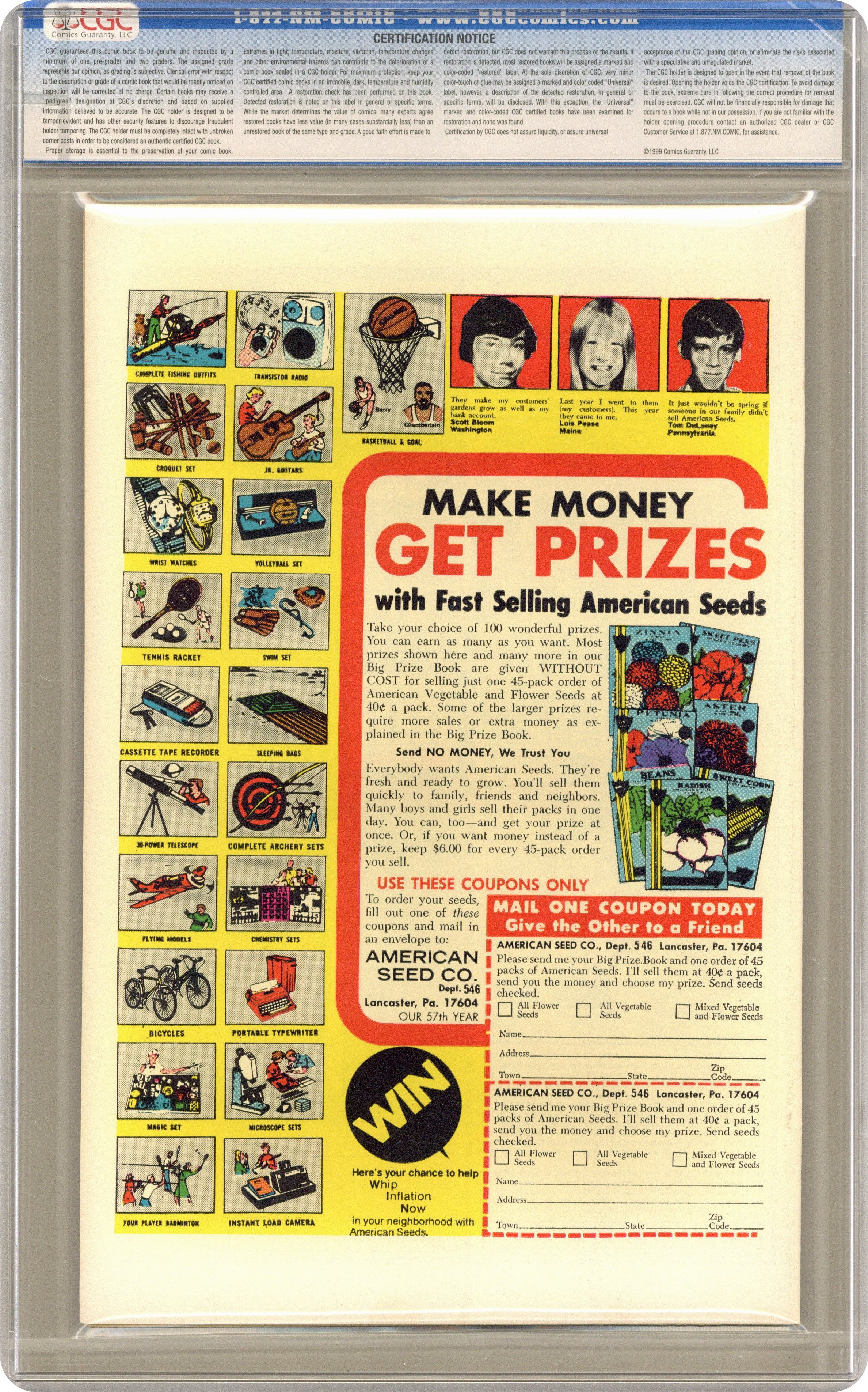 "Red Slash Across Midnight!" Written by Doug Moench. Art by Don Perlin. The city trembles as a were-beast stalks the streets! And it's not Jack Russell. 32 pages, FC. Cover price $0.25. Grade: CGC 9.8 explanation of grade Condition: Used (collectible)