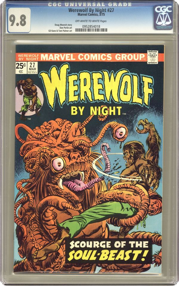 Marvel Value Stamp. Cover pencils by Gil Kane, inks by Tom Palmer. The Amazing Dr. Glitternight, script by Doug Moench, art by Don Perlin; the Werewolf battles the Soul-Beast; story continued in part from Giant-Size Werewolf #3. 36 pgs. $0.25. Cover price $0.25. Grade: CGC 9.8 explanation of grade Condition: Used (collectible)