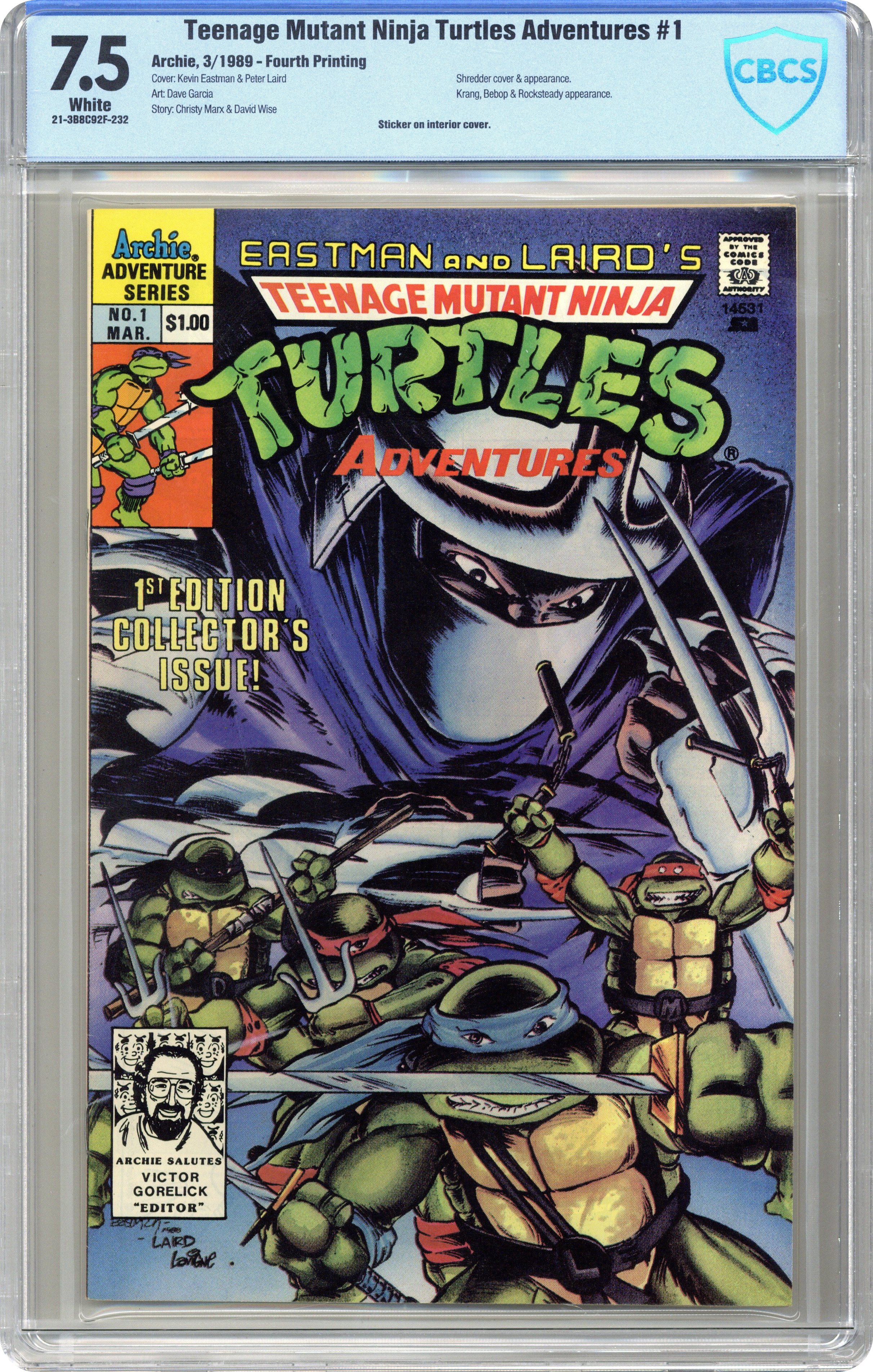 Published Mar 1989 by Archie Publications.Teenage Mutant Ninja Turtles Adventures (1989) Reprints 1B CBCS 7.5