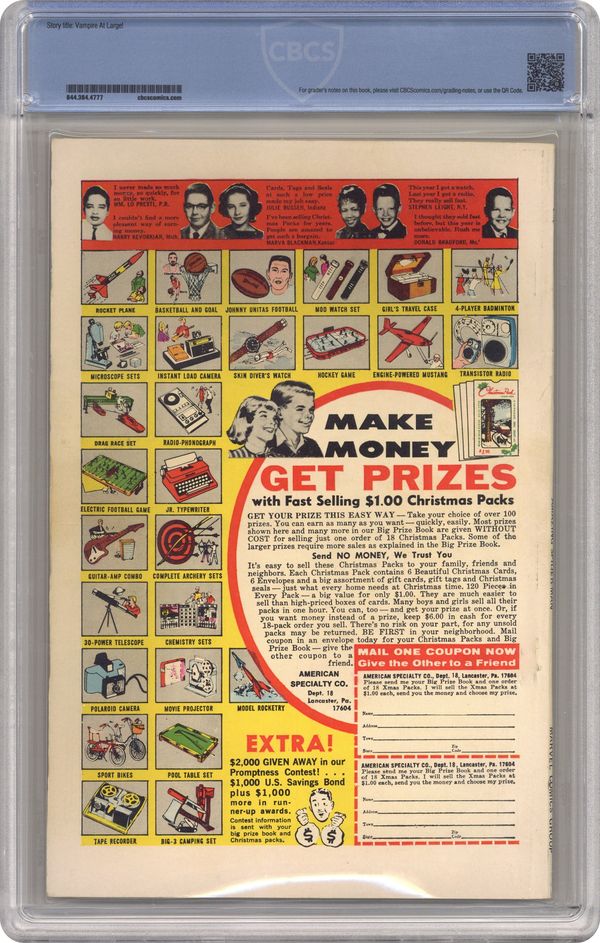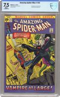 "Vampire at Large!" Double-Sized issue. Script by Roy Thomas. Pencils by Gil Kane. Inks by Frank Giacoia. Cover by Gil Kane and Frank Giacoia. The Amazing Spider-Man is on the ropes against the Living Vampire! The web-slinger (with his six arms) needs a miracle to survive the fangs of Morbius! And shockingly, he gets one -- that's crazy, green, and covered in scales: the Lethal Lizard! After a wild free-for-all, the wall-crawler and the Lizard drive Morbius out of Dr. Connors' summer home on Long Island. But they can't let the Living Vampire roam around New York City unchecked. Plus, the unlikely allies need a sample of Morbius' blood -- for the serum that might remove Peter Parker's extra arms! Wow, is this mission impossible for your friendly neighborhood Spider-Man? Good luck to the web-spinner and the Lizard too! Origin of Morbius. Cameo appearances by Gwen Stacy, Aunt May, J. Jonah Jameson, and Joe Robertson. Flashback cameos by Martine Bancroft and Emil Nikos. (Notes: Morbius appears next in Marvel Team-Up #3. Morbius' name is misspelled on the cover. This issue was reprinted in Marvel Tales 253.) 52 pages. Cover price $0.25. Grade: CBCS 7.5 explanation of grade Condition: Used (collectible)