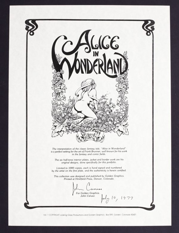 Published Jul 1977 by Golden Graphics.Alice in Wonderland Portfolio (1977 Golden Graphics) Frank Brunner 1 FN+ 6.5