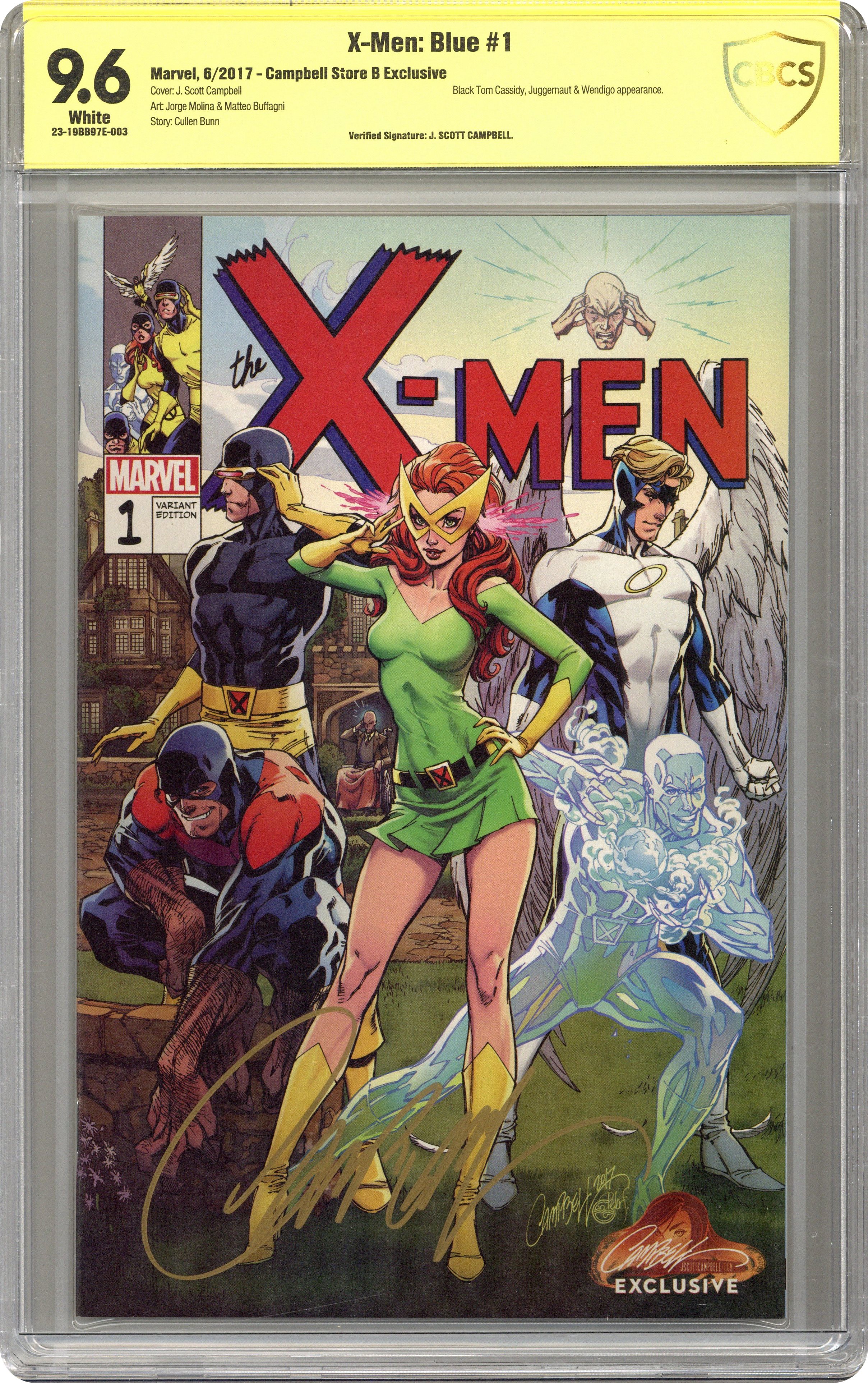 J. Scott Campbell Store Exclusive 60s Retro Variant. Written by Cullen Bunn. Art by Jorge Molina and Matteo Buffagni. Cover by J. Scott Campbell. THE ORIGINALS! Join MARVEL GIRL, CYCLOPS, BEAST, ICEMAN and ANGEL as they reclaim the title of X-MEN. After the world-shaking events of IVX, the original five X-Men are here to bring mutant criminals to justice and restore a heroic sheen to their team. But with a new leader in JEAN GREY and a new mentor in their 'arch-frenemy' MAGNETO, will old rivalries and new conflicts tear these heroes apart? Rated T+ Grade: CBCS 9.6 explanation of grade Condition: Used (collectible)