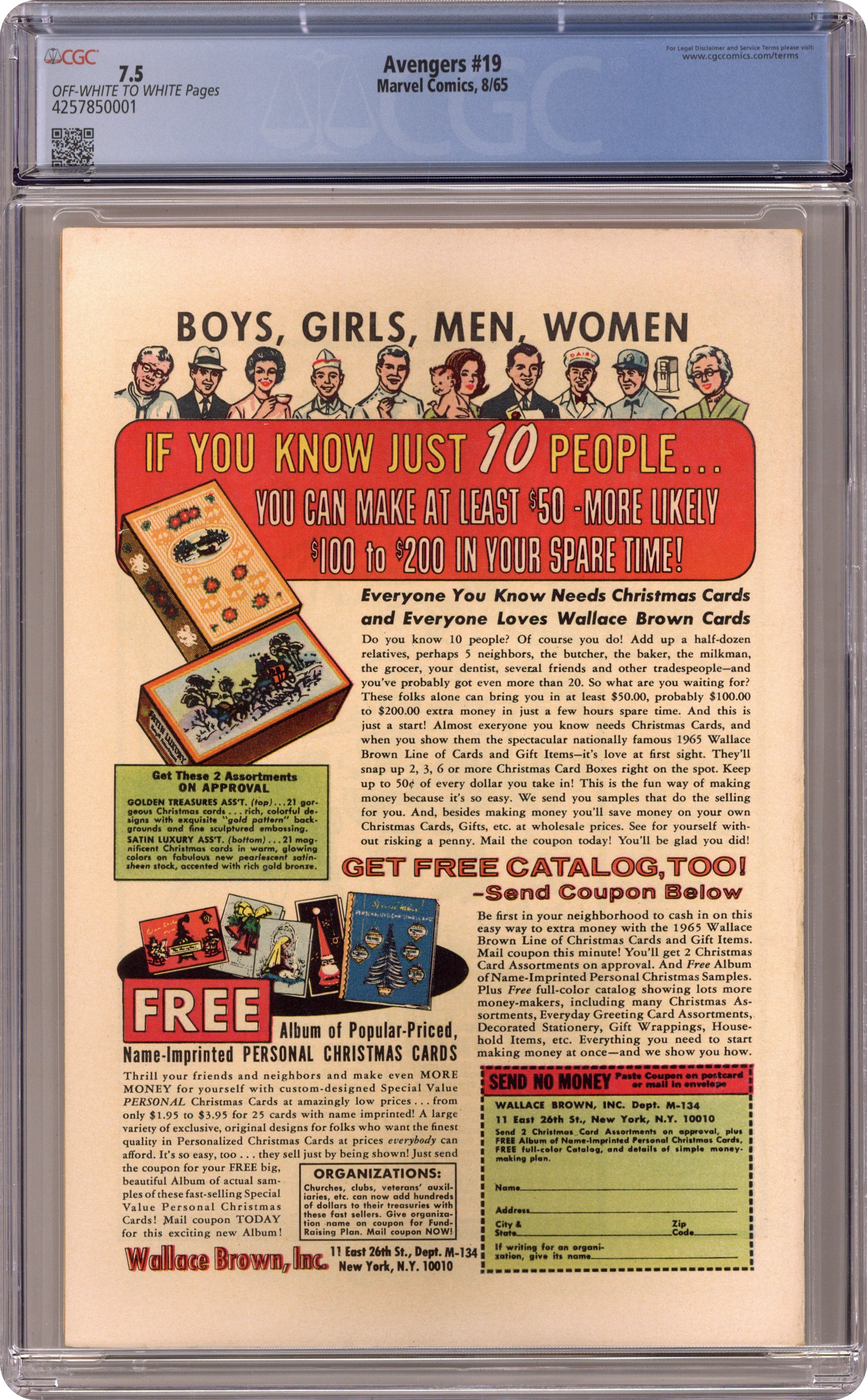 Ended Oct 13 2023 Winning Bid $163 Cover pencils by Jack Kirby and Don Heck (insets), inks by Frank Giacoia. First appearance of the Swordsman and the origin of Hawkeye in "The Coming of... the Swordsman!", script by Stan Lee, pencils by Don Heck, inks by Dick Ayers; The Swordsman infiltrates the Avenger's base and Scarlet Witch and Quicksilver attack him; He then admits he was testing them and wants to apply for membership; Captain America intervenes with information saying he is a wanted man and the Swordsman escapes; Hawkeye explains that the Swordsman used to be his tutor when he was in the circus; Meanwhile, in Nick Fury's office in Washington D.C HYDRA agents find a letter from Captain America; They later discard it as trash; It explained how Captain America wanted to work for S.H.I.E.L.D.; A mobster finds it and gives it to the Swordsman; A trap is laid for Captain America; He then leaves to meet with "Nick Fury"; Hawkeye finds out about the plan and gathers the other Avengers to help him; Captain America battles the Swordsman and gets captured before the others can arrive to help. Avengers Roll Call: Captain America, Hawkeye, Quicksilver, and the Scarlet Witch. Letter to the editor from Cary Burkett. 36 pgs., full color. $0.12. Cover price $0.12. Grade: CGC 7.5 explanation of grade Condition: Used (collectible)
