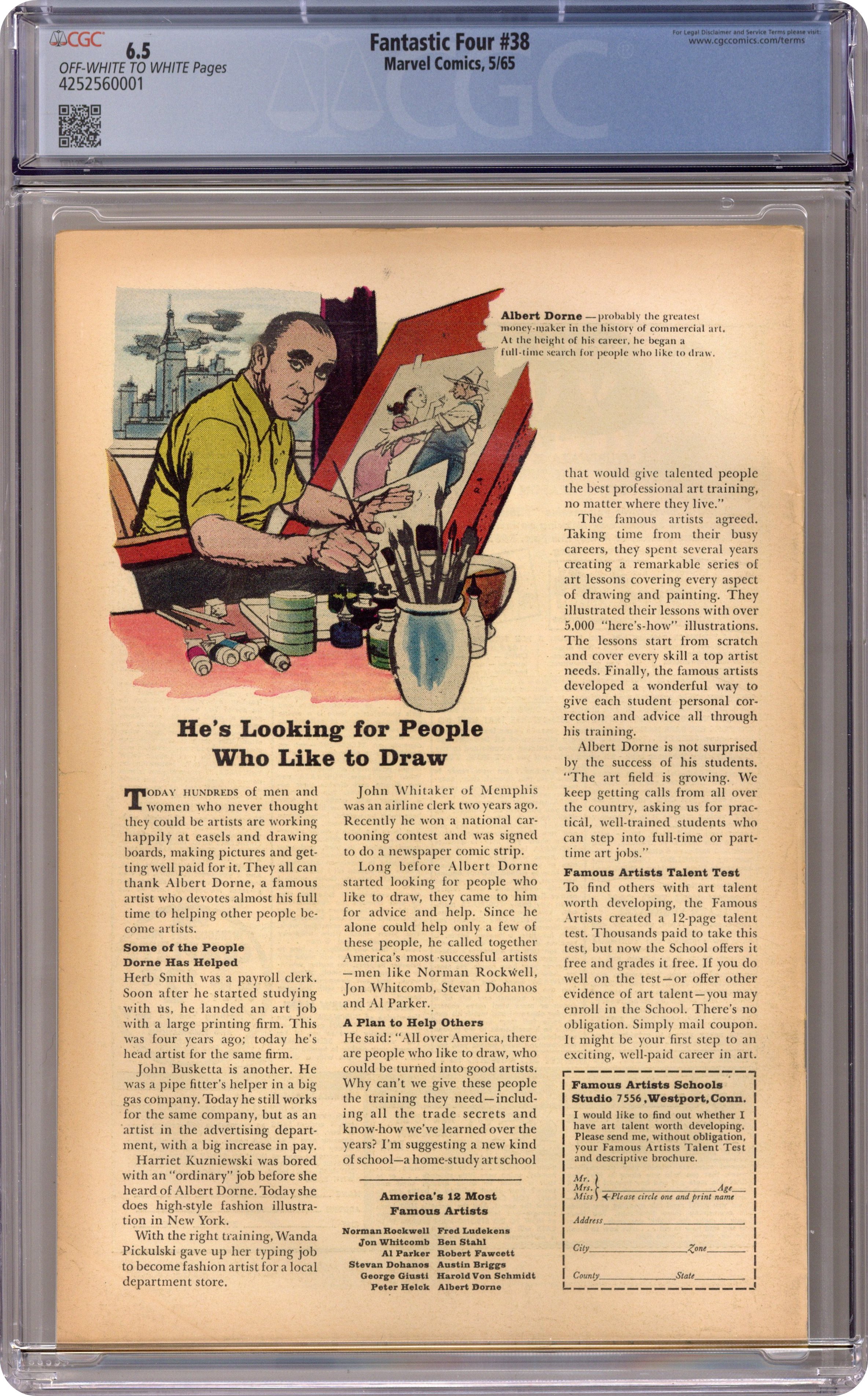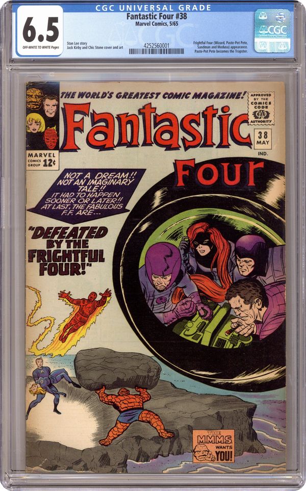 Cover pencils by Jack Kirby, inks by Chic Stone. Defeated by the Frightful Four!, script by Stan Lee, pencils by Jack Kirby, inks by Chic Stone; The Frightful Four kidnap Sue and lure the FF into a nuclear blast. 36 pgs. $0.12. Cover price $0.12. Grade: CGC 6.5 explanation of grade Condition: Used (collectible)