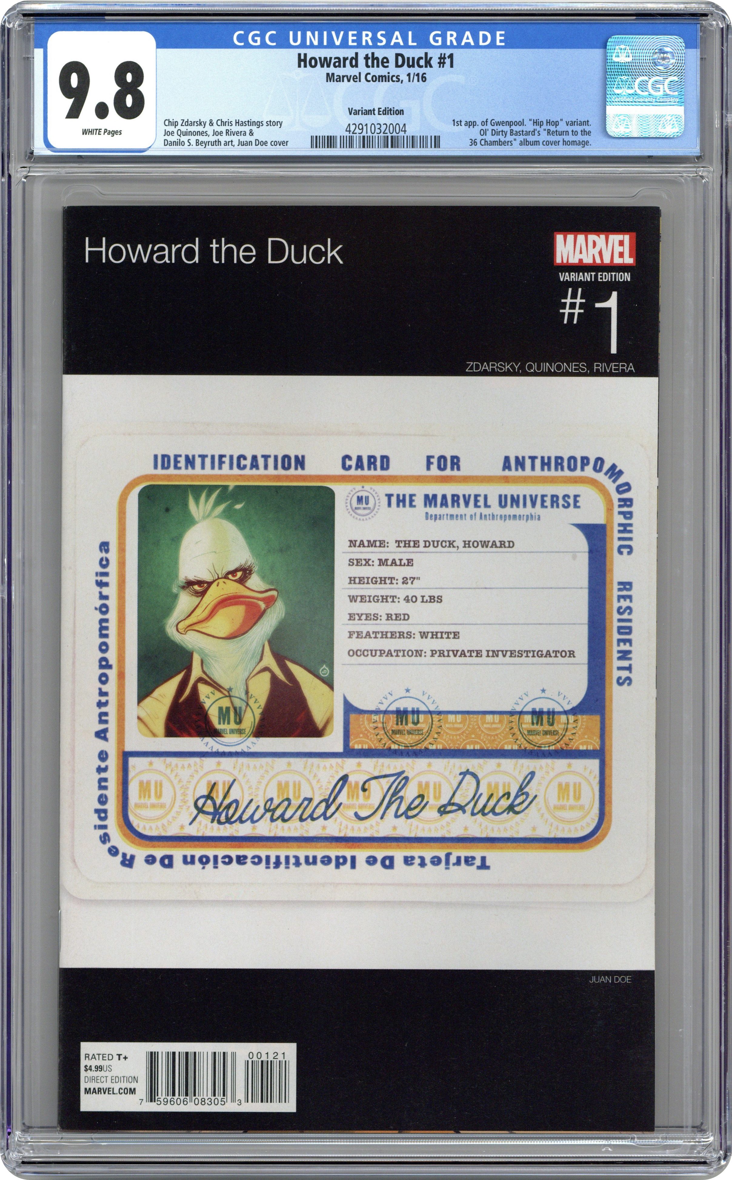 Howard The Duck (2015 5th Series) 1I CGC 9.8 Doe Hip Hop Variant