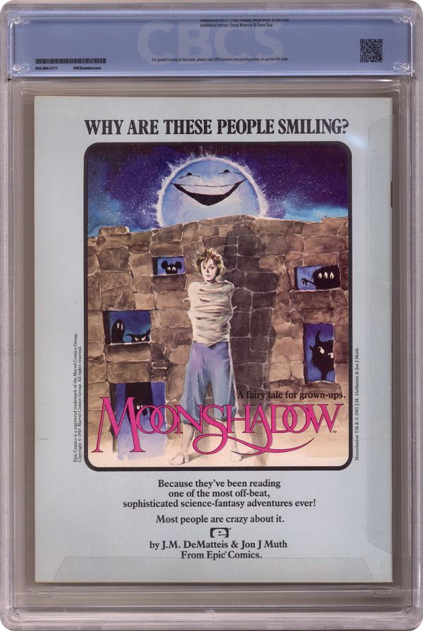 Ended Jun 23 2024 Winning Bid $16 Cover pencils by Phil Hale. The Dweller in Darkness (Chapter Eight)--The Last Galactus Story, script and pencils by John Byrne, inks by Bob Wiacek. Reaching Out starring Dr. Watchstop, script and art by Ken Macklin. Beating the Heat starring Dr. Watchstop, script and art by Ken Macklin. Illustrated text piece on Tim Conrad's portfolio. Briar Rose, script by Lynn Parrish, art by Kent Williams. Final Passage (Chapter VIII) starring Toadswart, script and art by Tim Conrad. Mediaview article by Dennis O'Neil. Fish Story, script by Mike Baron, art by John Totleben. Ein Heldentraum, script by Patrick Mason, art by P. Craig Russell; Goethe adaptation. Snowmen, script and pencils by Kent Williams. Snickers That's Entertainment, script by Kevin Duane, art by Mark Bode. The Champion, script by Doug Moench and Gene Day, art by Dan Day. Johnny Badhair, script and pencils by Phil Hale. 100 pgs. Dec, 1985. $2.50. Cover price $2.50. Grade: CBCS 8.5 explanation of grade Condition: Used (collectible)