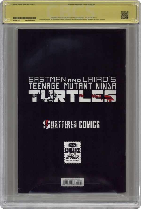 Published Jul 2020 by IDW Publishing.Teenage Mutant Ninja Turtles (2020 IDW) #1 Reprint 1SHATTERED.A CBCS 9.8 Signed Dimasi DiMasi Shattered Variant