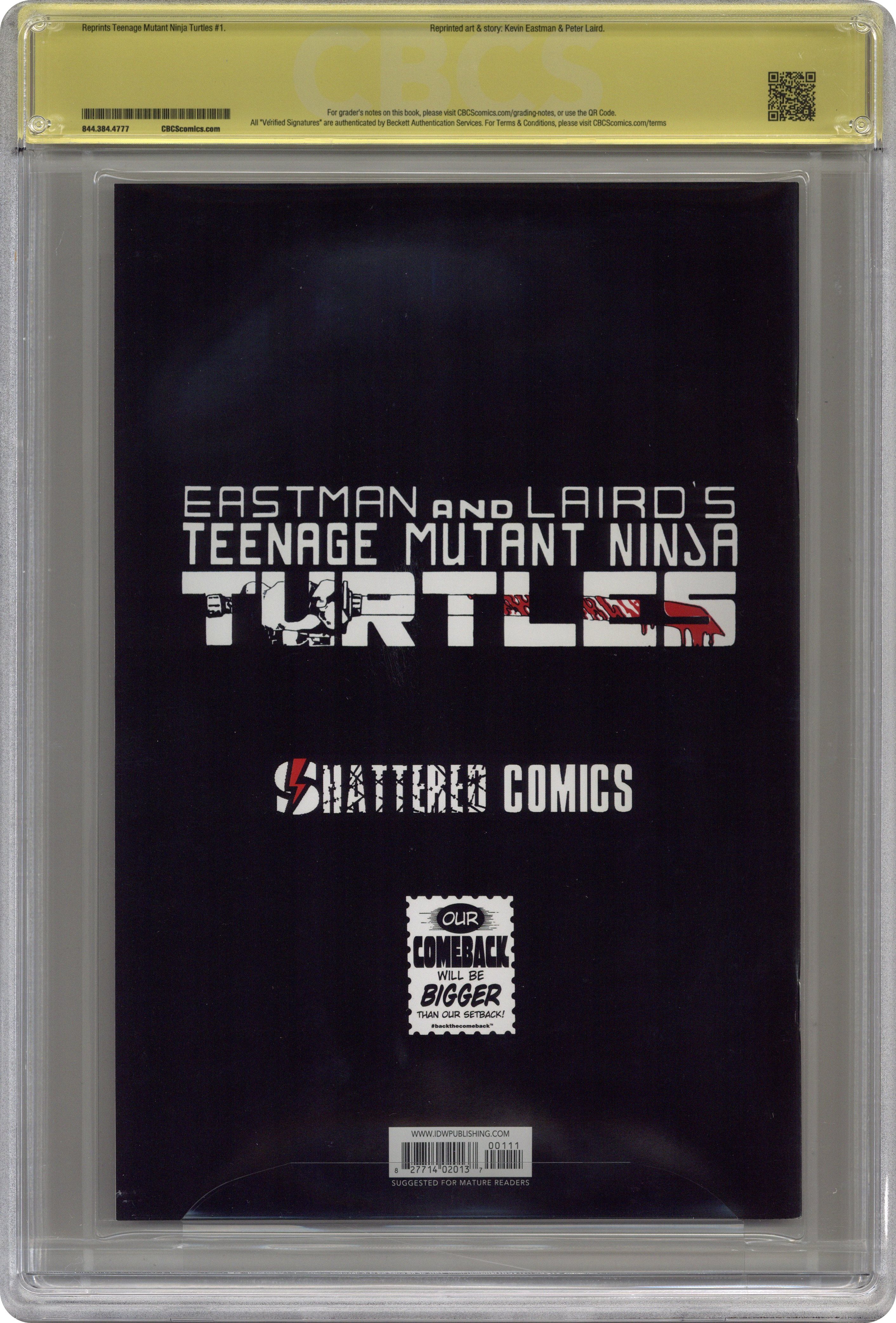 Ended Oct 19 2023 Winning Bid $46 Shattered Comics Variant Cover. Reprints Teenage Mutant Ninja Turtles #1 in its original format. 44 pgs., B&W, 7 3/8 x 11". Grade: CBCS 9.8 explanation of grade Condition: Used (collectible)