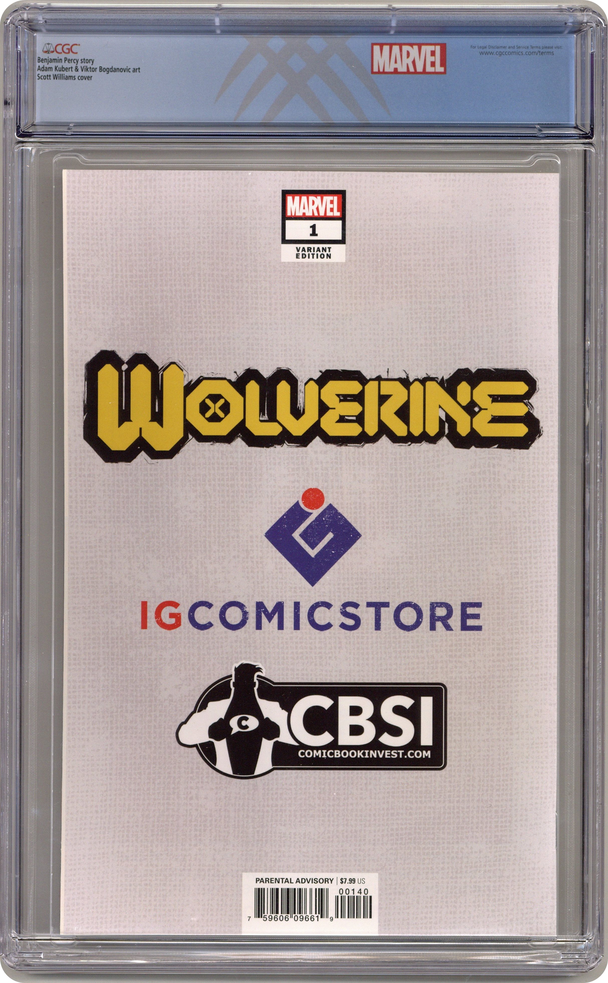 Ended Jun 17 2025 Winning Bid $39 IG Comic Store and ComicBookInvest.com Exclusive Virgin Sketch Cover by Scott Williams - limited to 400 copies. Written by Ben Percy. Art by Adam Kubert and Viktor Bogdanovic. THE BEST IS BACK! Wolverine been through a lot. He's been a loner. He's been a killer. He's been a hero. He's been an Avenger. He's been to hell and back. Now, as the nation of Krakoa brings together all Mutantkind, he can finally be… happy? With his family all together and safe, Wolverine has everything he ever wanted… and everything to lose. Writer Benjamin Percy (X-FORCE, WOLVERINE: THE LONG NIGHT) and legendary artist Adam Kubert (X-MEN, AVENGERS) bring the best there is to his new home! PLUS: The return of OMEGA RED! 72 pages, full color. Parental Advisory Grade: CGC 9.8 explanation of grade Condition: Used (collectible)