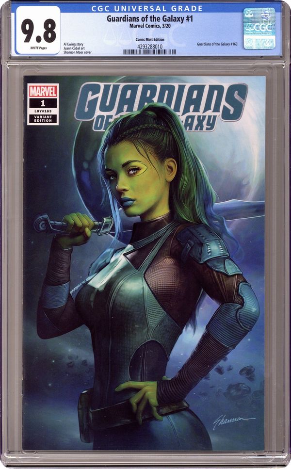 Ended Dec 27 2023 Winning Bid $43 The Comic Mint exclusive variant by Shannon Maer - Limited to 3000 copies. Written by Al Ewing. Art and Cover by Juan Cabal. Once, they were a team of misfits. Now they're a family, and they've earned their peace. But the universe is not a peaceful place -- and it's only getting worse. The Great Empires are in turmoil. The rule of law is dead. And amidst the chaos, the Gods of Olympus have returned -- harbingers of a new age of war, reborn to burn their mark on the stars themselves. Someone has to guard the galaxy - but who will accept the mission? And will they survive it? Al Ewing (IMMORTAL HULK) and Juann Cabal (FRIENDLY NEIGHBORHOOD SPIDER-MAN) bring you in on the ground floor of a whole Marvel Universe of action and suspense! 36 pages, full color. Rated T+ Grade: CGC 9.8 explanation of grade Condition: Used (collectible)