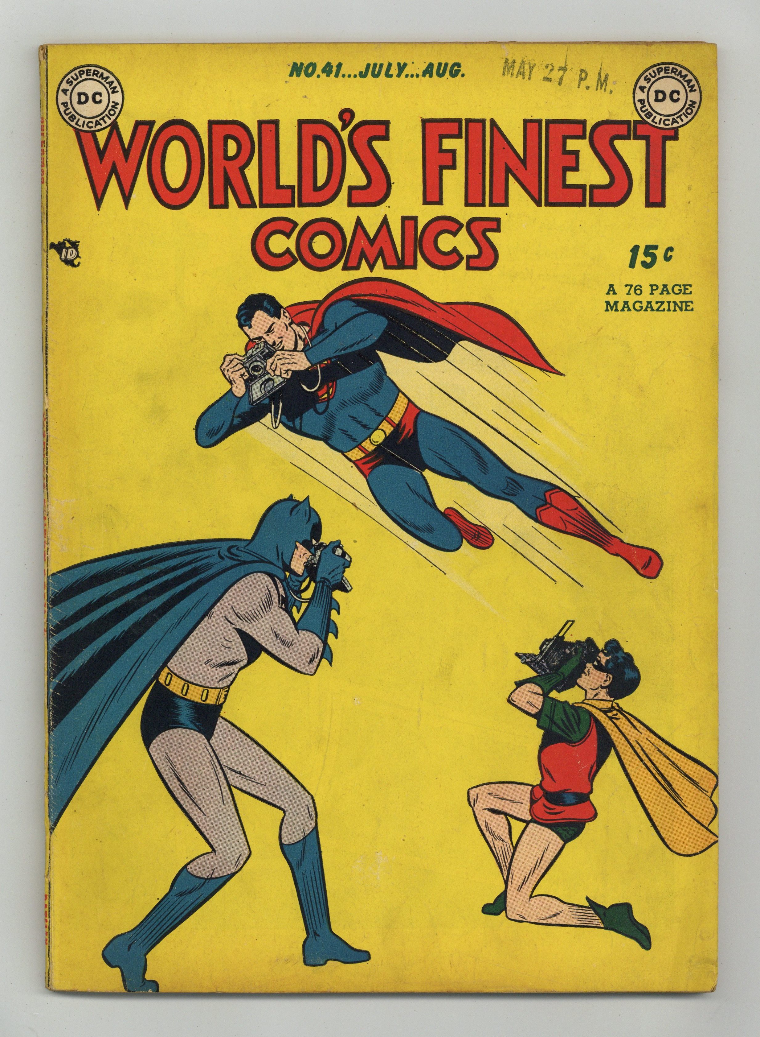 Ended Oct 16 2023 Winning Bid $125 Cover art by Win Mortimer. The Discovery of Supermanium, art by Al Plastino; an unscrupulous promoter gets Superman to discover a new element and then tries to corner the market. Collector of Humans starring Green Arrow and The Snare, script by Otto Binder, art by George Papp; a fanatic collector tries to add humans to his collection. See America Foist starring Doc & Fatty, art by Howard Sherman. The Voyage of the Merry X starring Boy Commandos, pencils by Carmine Infantino. The Dog Who Could Work Miracles starring Zatara, art by Joe Kubert. Devils With Baggy Pants text article by Robert M. Banker. The Man With the Fatal Hands starring Batman, pencils by Bob Kane, inks by Charles Paris. 76 Pages, Full Color. Cover price $0.15. Grade: GD+ 2.5 explanation of grade Condition: Used (collectible)