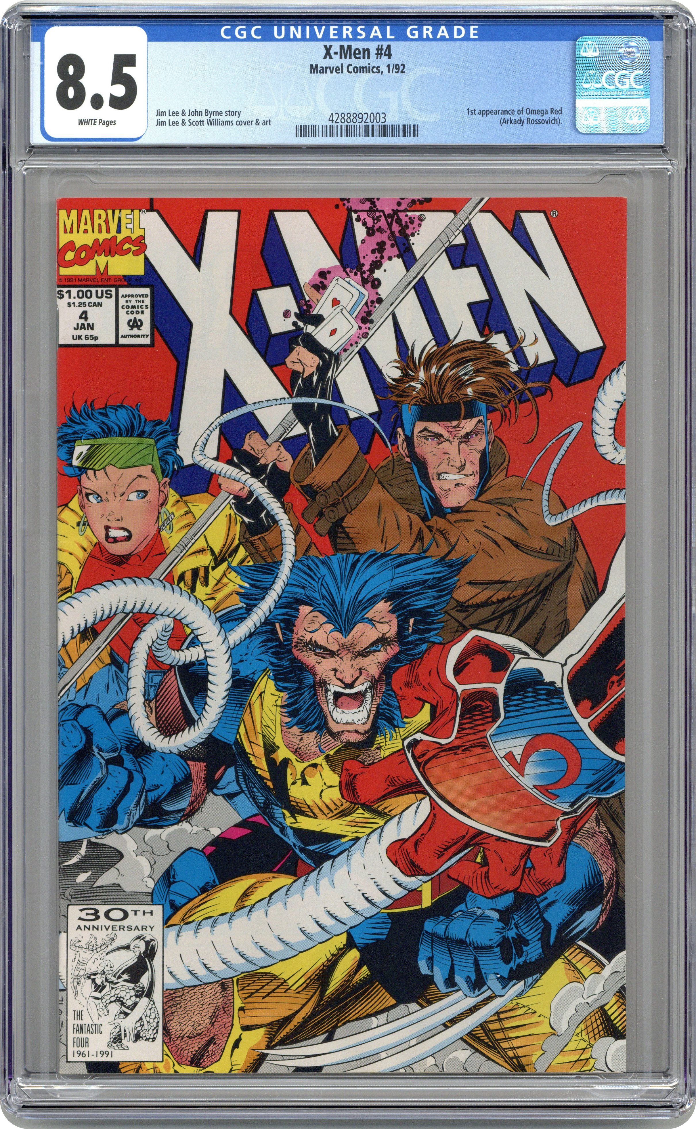 Ended Nov 21 2023 Winning Bid $26 Direct Edition. Cover pencils by Jim Lee, inks by Scott Williams. The Resurrection and the Flesh, script by Jim Lee (Plot) and John Byrne, pencils by Jim Lee, inks by Scott Williams. First appearance of Omega Red! The Hand brings Omega Red (formerly Arkady) back to life; The X-Men play basketball, mutant style; Moira agonizes over her part in the Magneto fiasco and leaves; Gambit and Rogue are on the way to a chaperoned date when Omega Red and the Hand interfere. Cover price $1.00. Grade: CGC 8.5 explanation of grade Condition: Used (collectible)