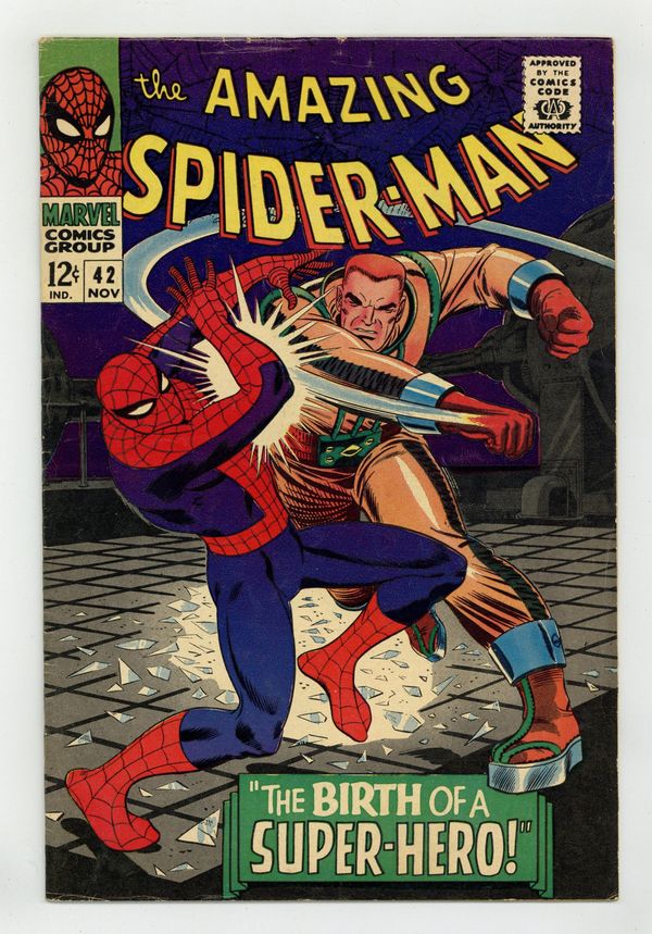 Third appearance of Mary Jane (cameo; first time face is shown). Cover by John Romita Sr. Rhino, Foggy Nelson (from Daredevil), and Dr. Curtis Connors cameos in The Birth of a Super-Hero!, script by Stan Lee, art by John Romita Sr.; John Jameson was exposed to some strange space spores on a space mission. He returns to Earth where he gains super strength; Spider-Man is mistakenly accused of robbing a bank so Jameson decides to try to capture him with his new super powers. Ad for the M.M.M.S. fan club. Reprinted in Marvel Tales # 31 and 182. 36 pgs., full color. $0.12. Cover price $0.12. Grade: VG+ 4.5 explanation of grade Condition: Used (collectible)