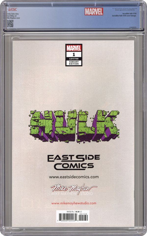 Hulk (2022 Marvel) 1EASTSIDE.C CGC 9.8 Mayhew East Side Reverse Variant